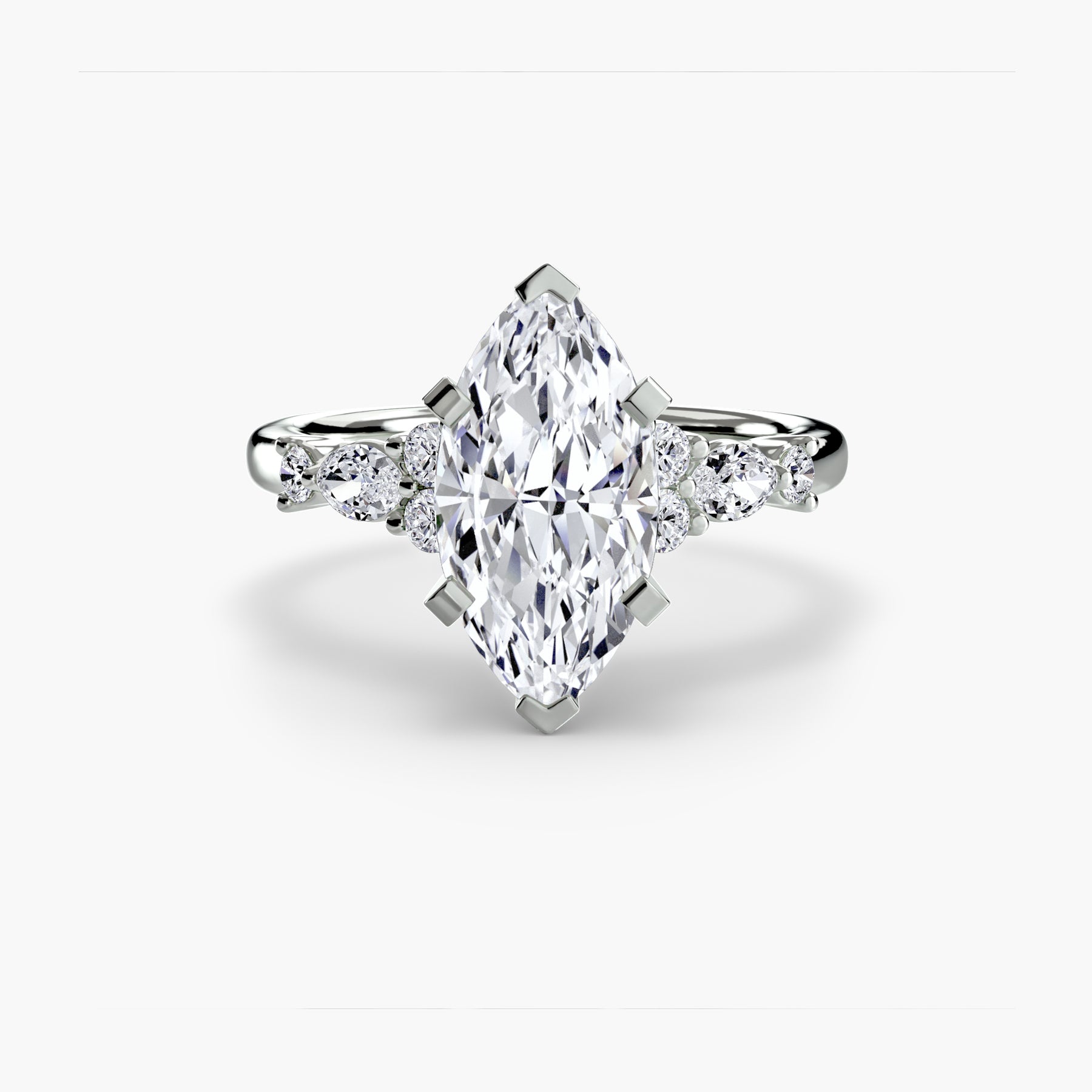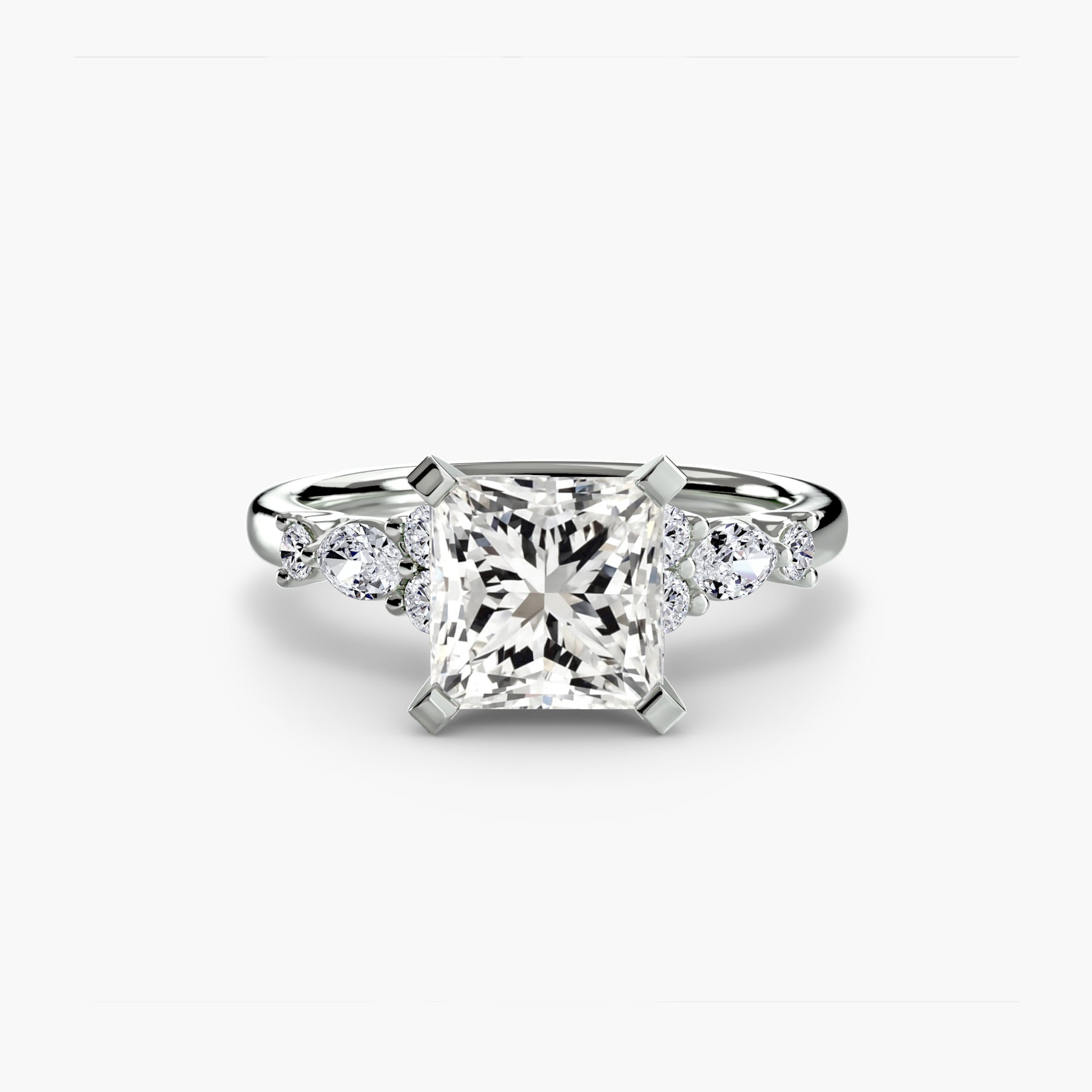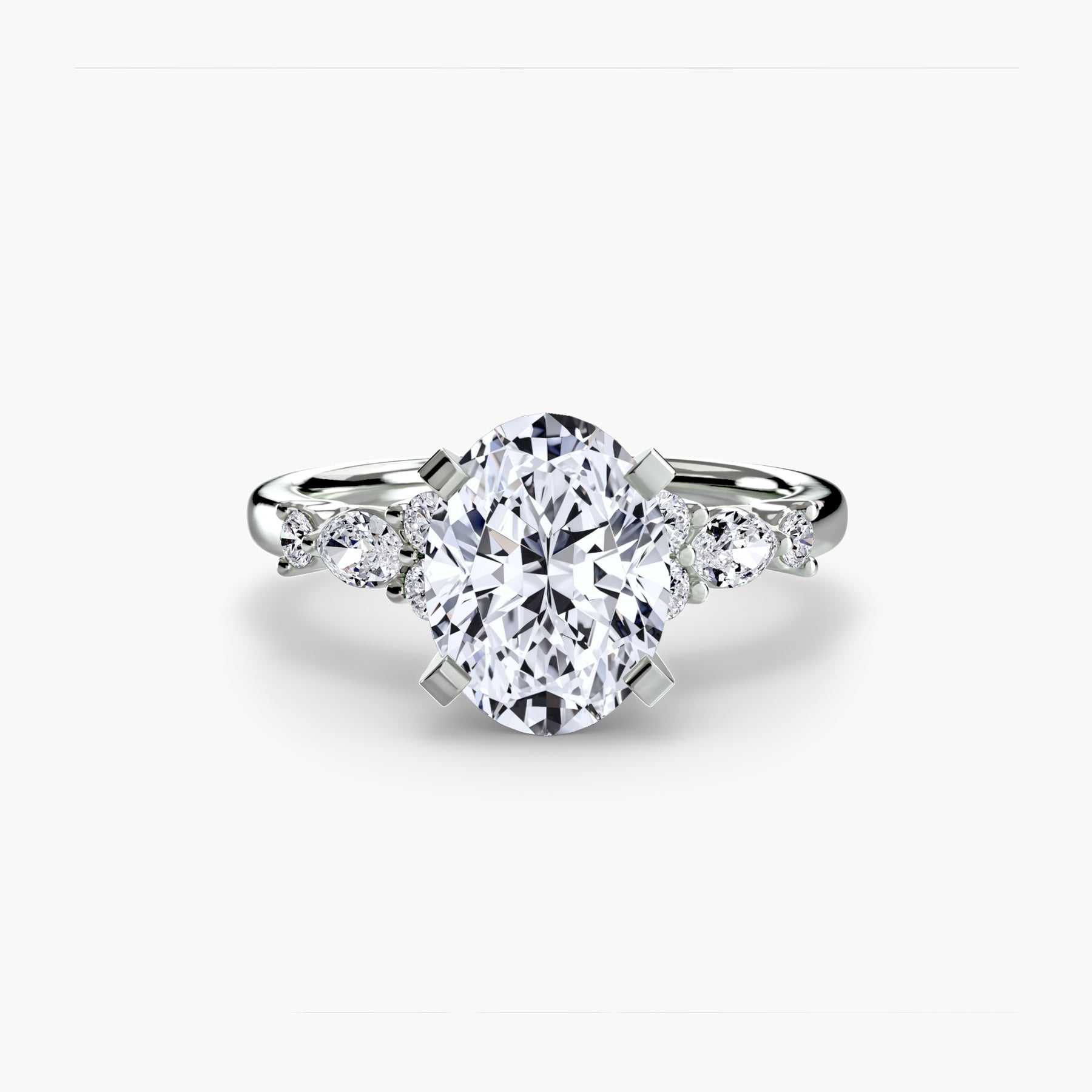 Designed with side stones that gracefully complement the center stone, this ring strikes a balance between classic elegance and added brilliance. Perfect for those who want a refined look with just the right amount of sparkle.