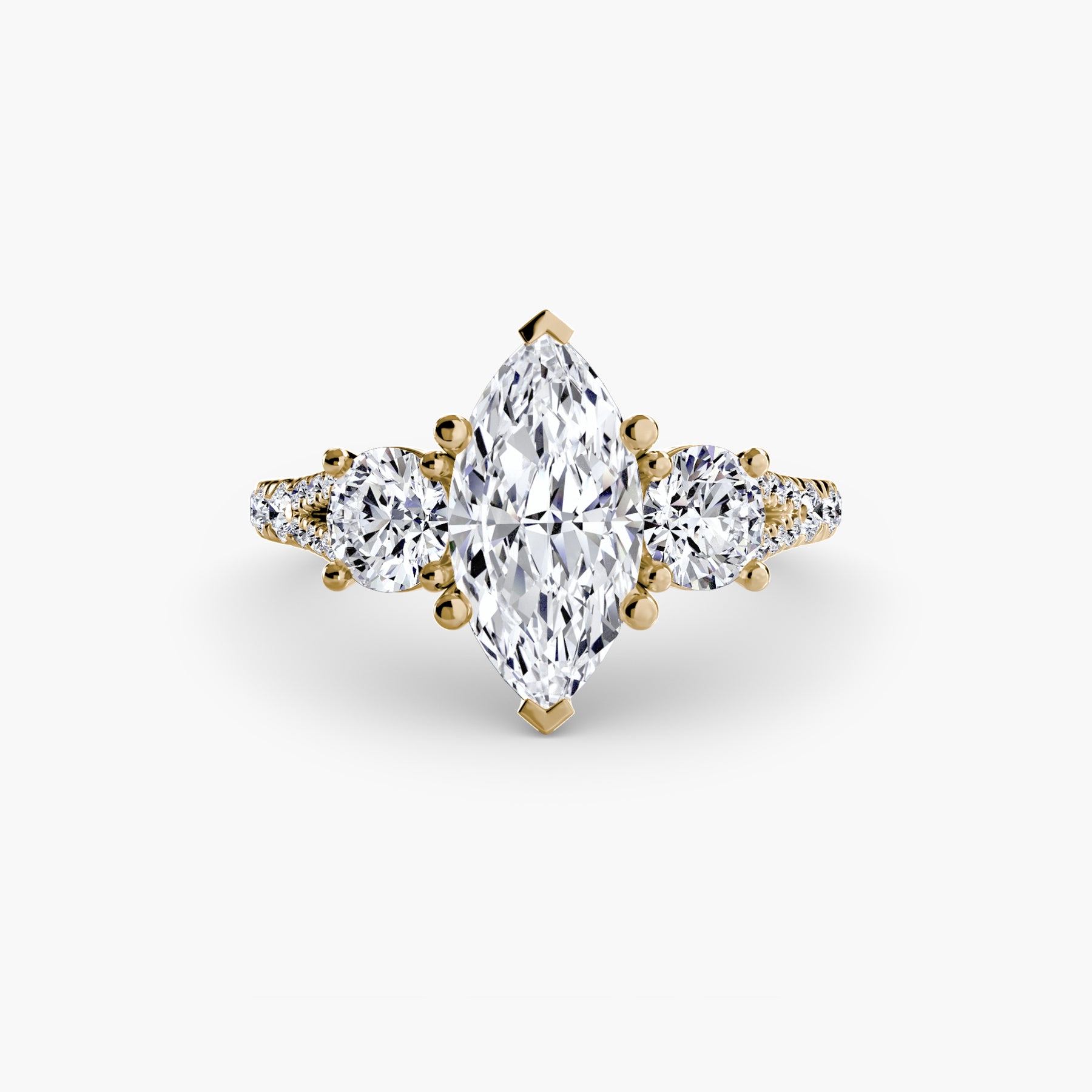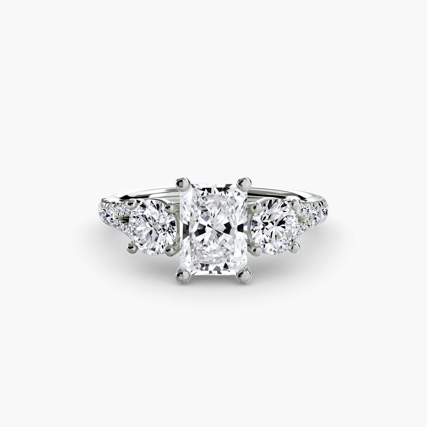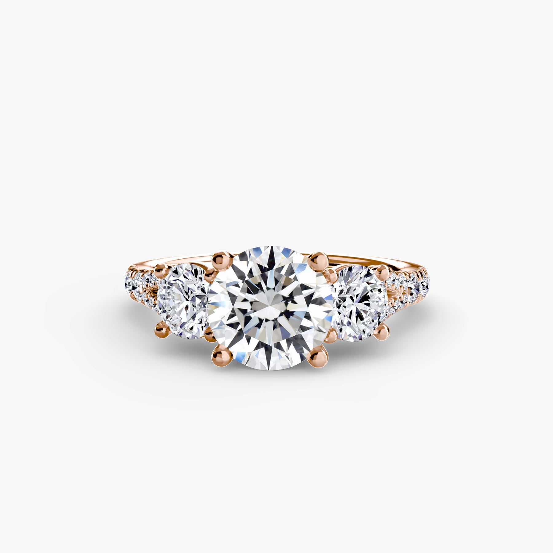This elegant three-stone ring symbolizes your past, present, and future, elevated with a pavé band for extra sparkle and detail. A perfect union of meaning and brilliance.