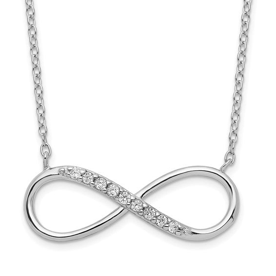 Sterling Silver Rhodium-Plated With Cz Infinity 16" With 2 In Ext Necklace