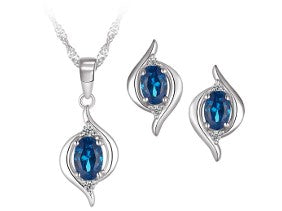 Legend Sterling silver oval swirl CZ earrings and pendant set -December Birthstone. 18 inch chain included