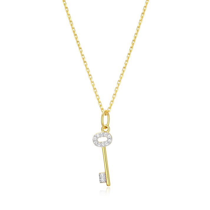 Skeleton Key Pendant Necklace in 14K Yellow Gold-Plated Sterling Silver