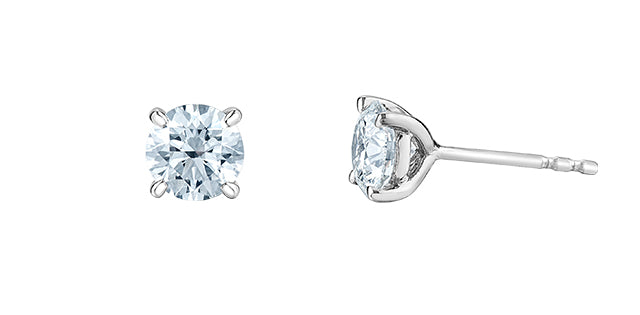 Lady's White Canadian Certified Gold14 Karat Stud Earrings One 0.76Ct Round Brilliant Cut D Vs1 Lab Grown Diamond