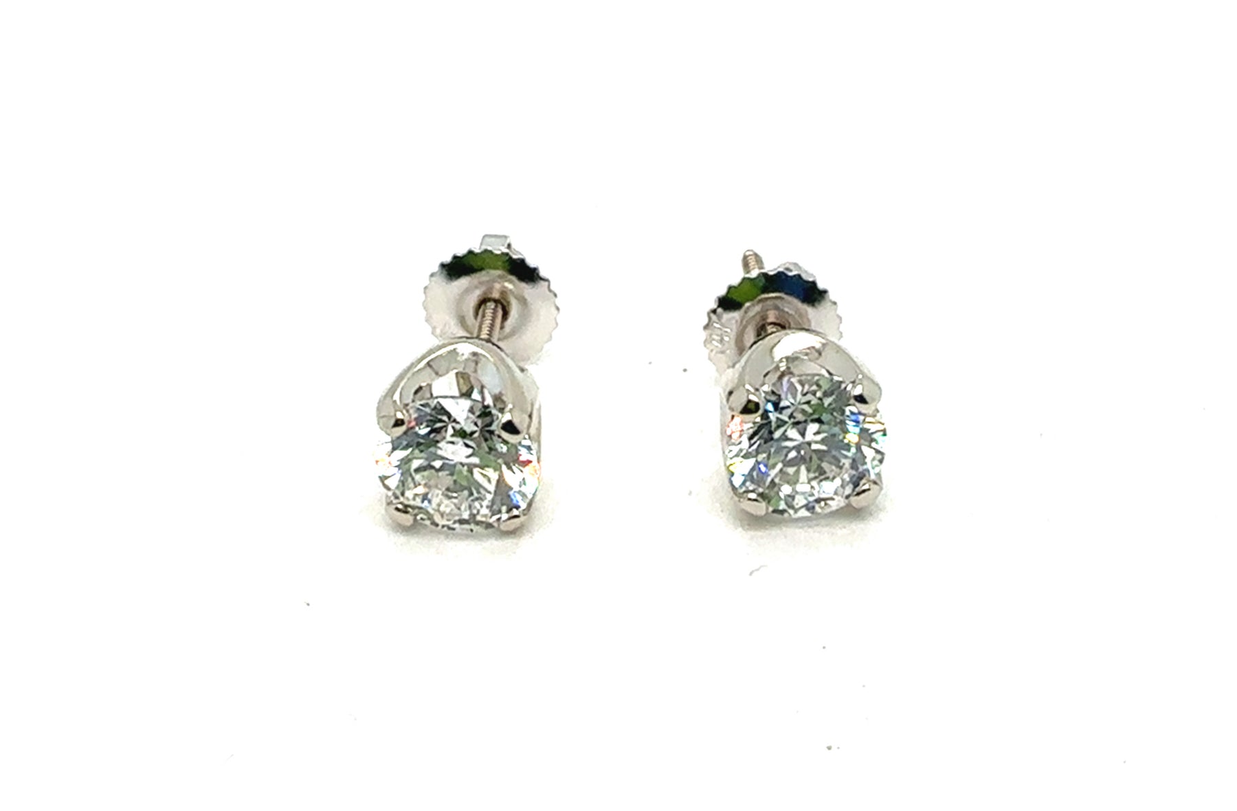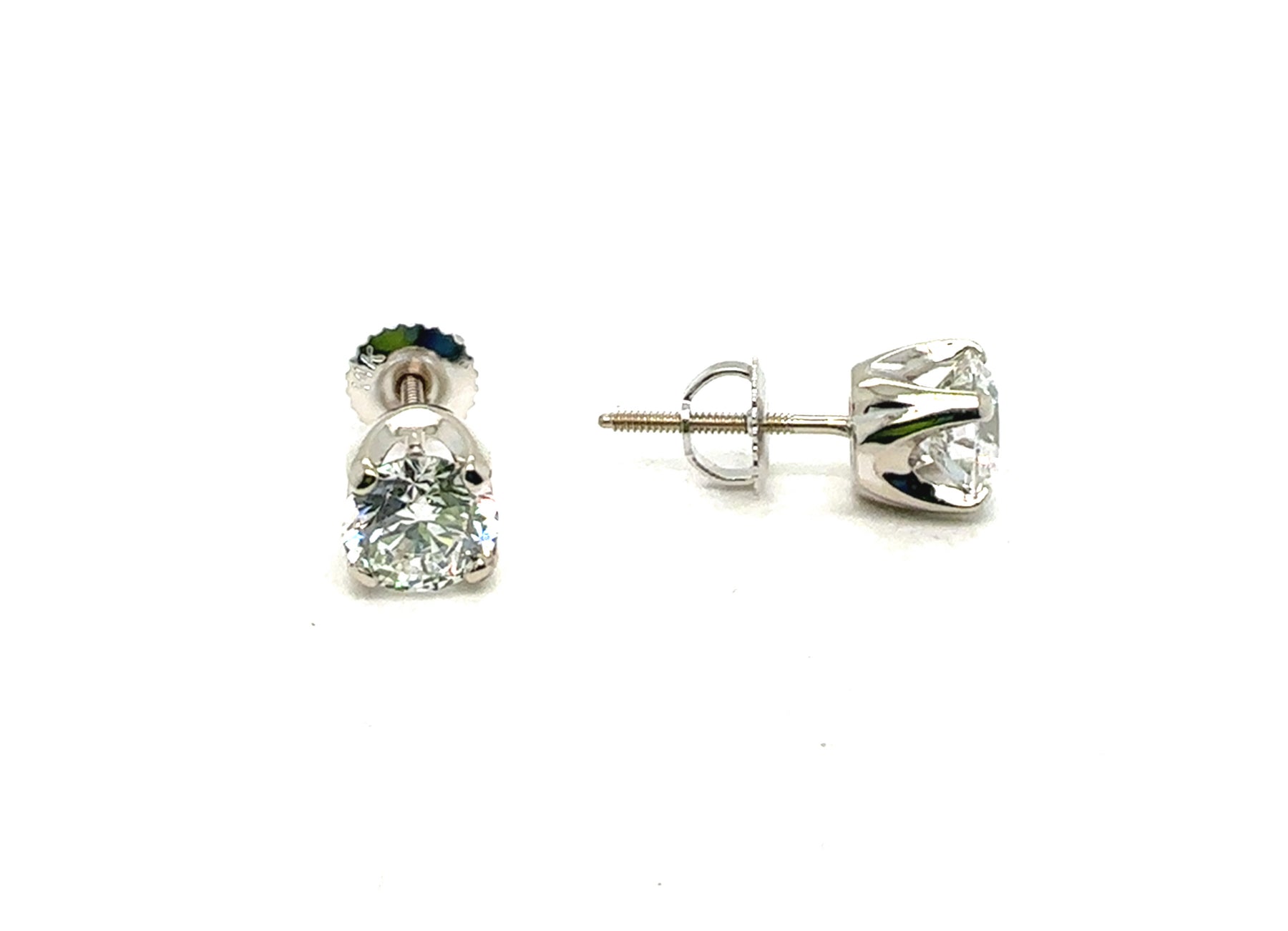 Lady's White Gold 14K Stud Earrings With One = 1.01Ct Round Brilliant Cut E Vs2 Lab Grown Diamond And One = 1.00Ct Round Brilliant Cut E Vs2 Lab Grown Diamond