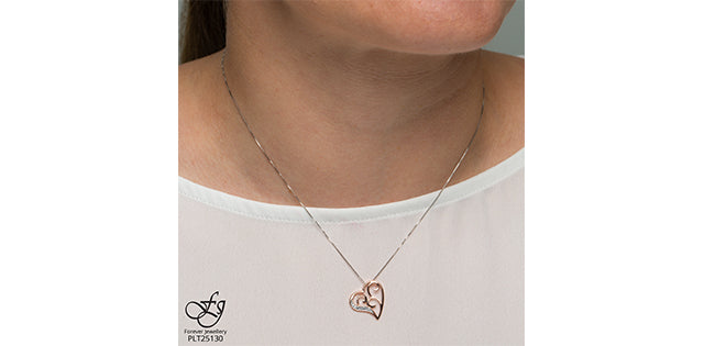 Lady's Rosé 10 Karat Canadian Certified Gold Heart Pendant Length 18 3=0.02tw Round Single Cut G/H SI3 Diamonds Style: Box