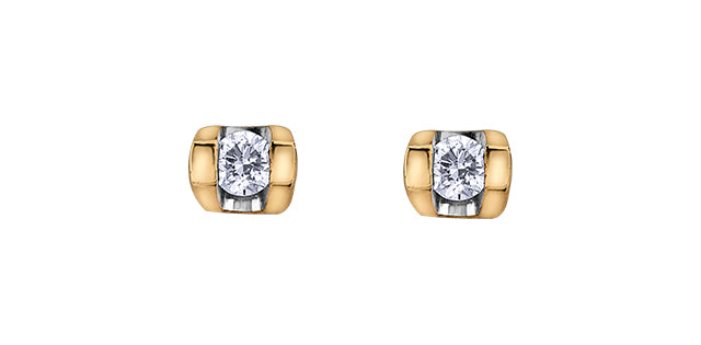 Forever Jewellery Collection Lady's Yellow 10 Karat Canadian Certified Gold Stud Earrings 2=0.06Tw Round Brilliant Cut G/H Si2 Diamonds