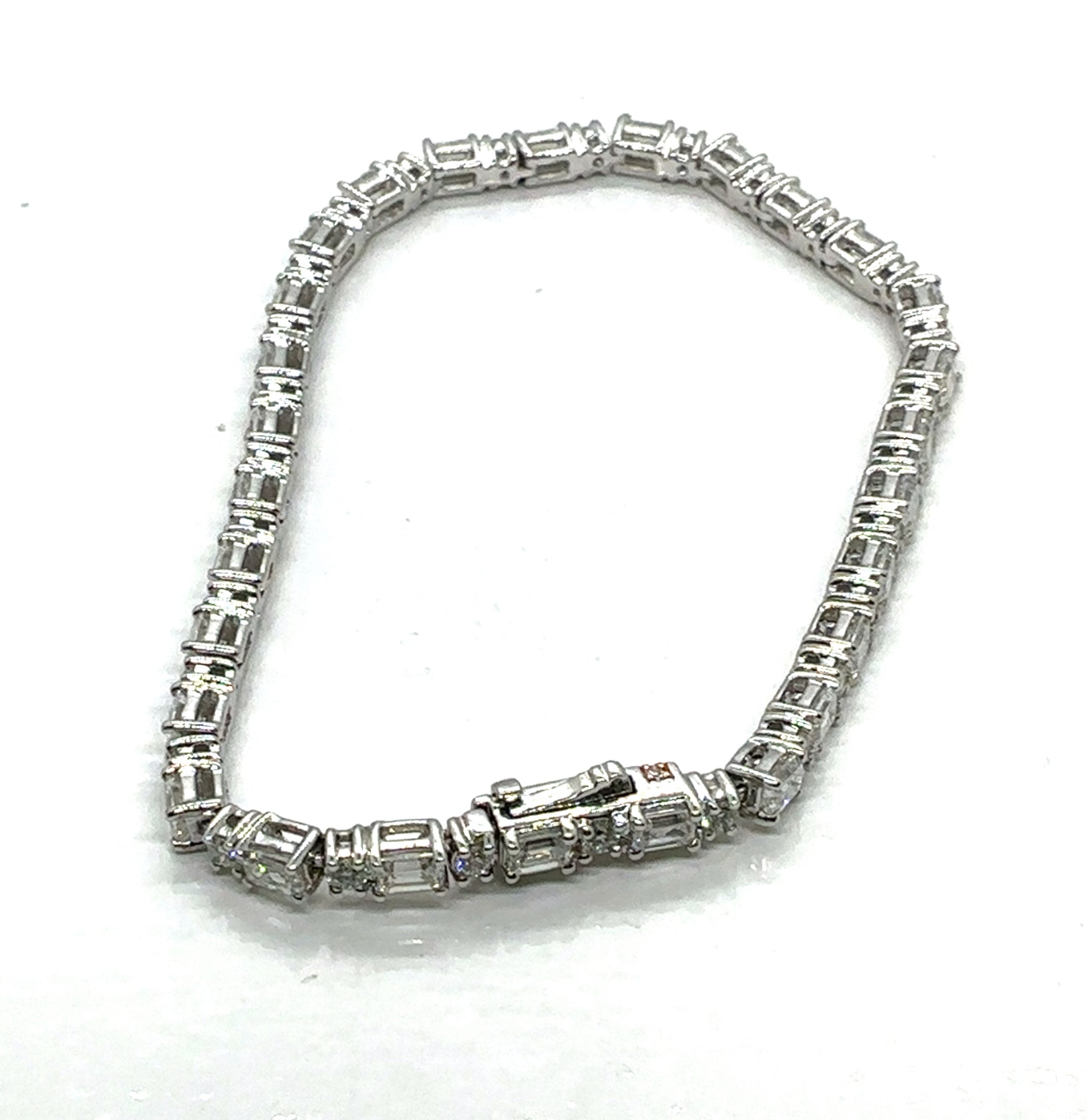Lady's White Gold 14K Tennis Bracelet Length 7 With 28 = 2.50Tw Round Brilliant Cut Lab Grown Diamonds And 28 = 2.50Tw Emerald Cut Lab Grown Diamonds 5.00ct Tw