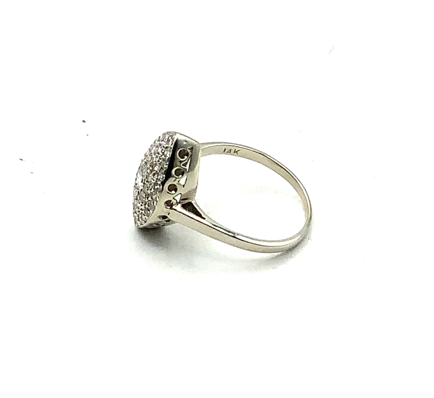 Lady's White Gold 14K Cluster Fashion Ring Size 6.5 With One = 0.10Ct Round Brilliant Cut Diamond And 40 = 0.60Tw Round Brilliant Cut Diamonds Weight: 3.1