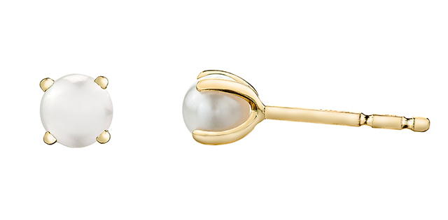 Lady's Yellow Canadian Certified Gold 10K Stud Earrings With 2 = 4.00Mm Round Pearls