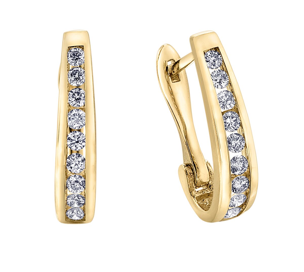 Lady's Yellow Canadian Certified 10 Karat Small Hoop Earrings With 18=0.10Tw Round Single Cut Diamonds