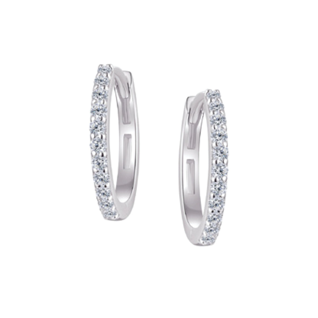 Legends Sterling Silver 14MM CZ Hoop Earrings