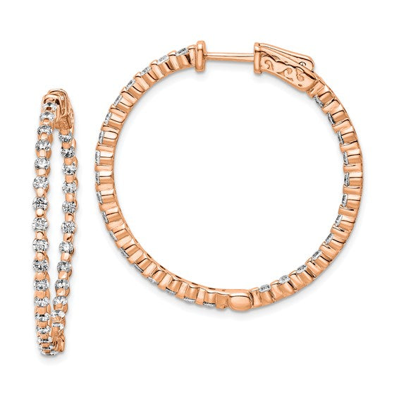Sterling Silver Rose-tone CZ Hinged In/Out Hoop Earrings