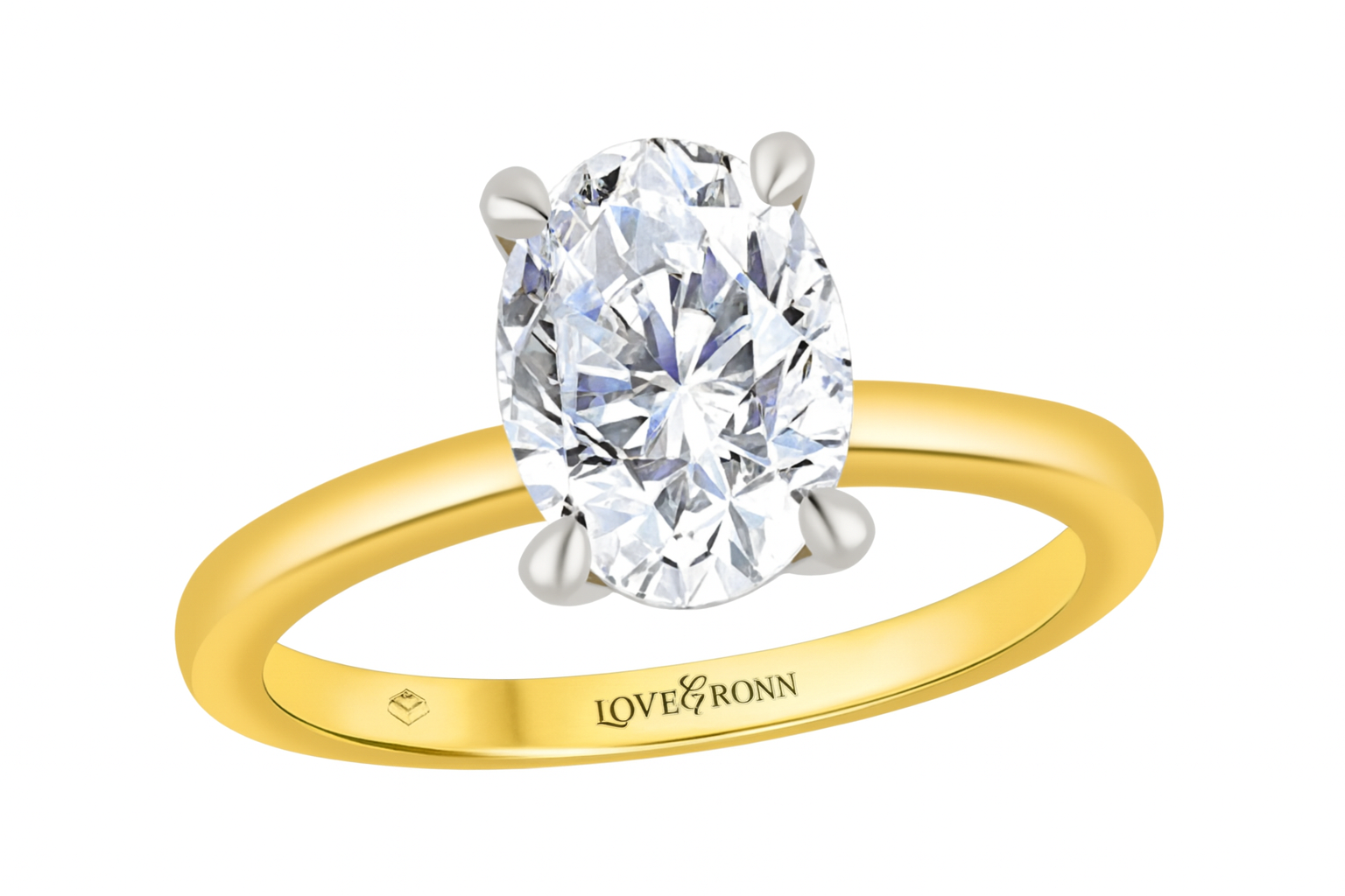 Lady's Yellow Gold 14K Solitaire Engagement Ring Size 6.5 With One = 2.00Ct Oval Shape F Vs2 Lab Grown Diamond. Made in Canada With Certified Canadian Gold. Comes With Love Grown Cert Card.