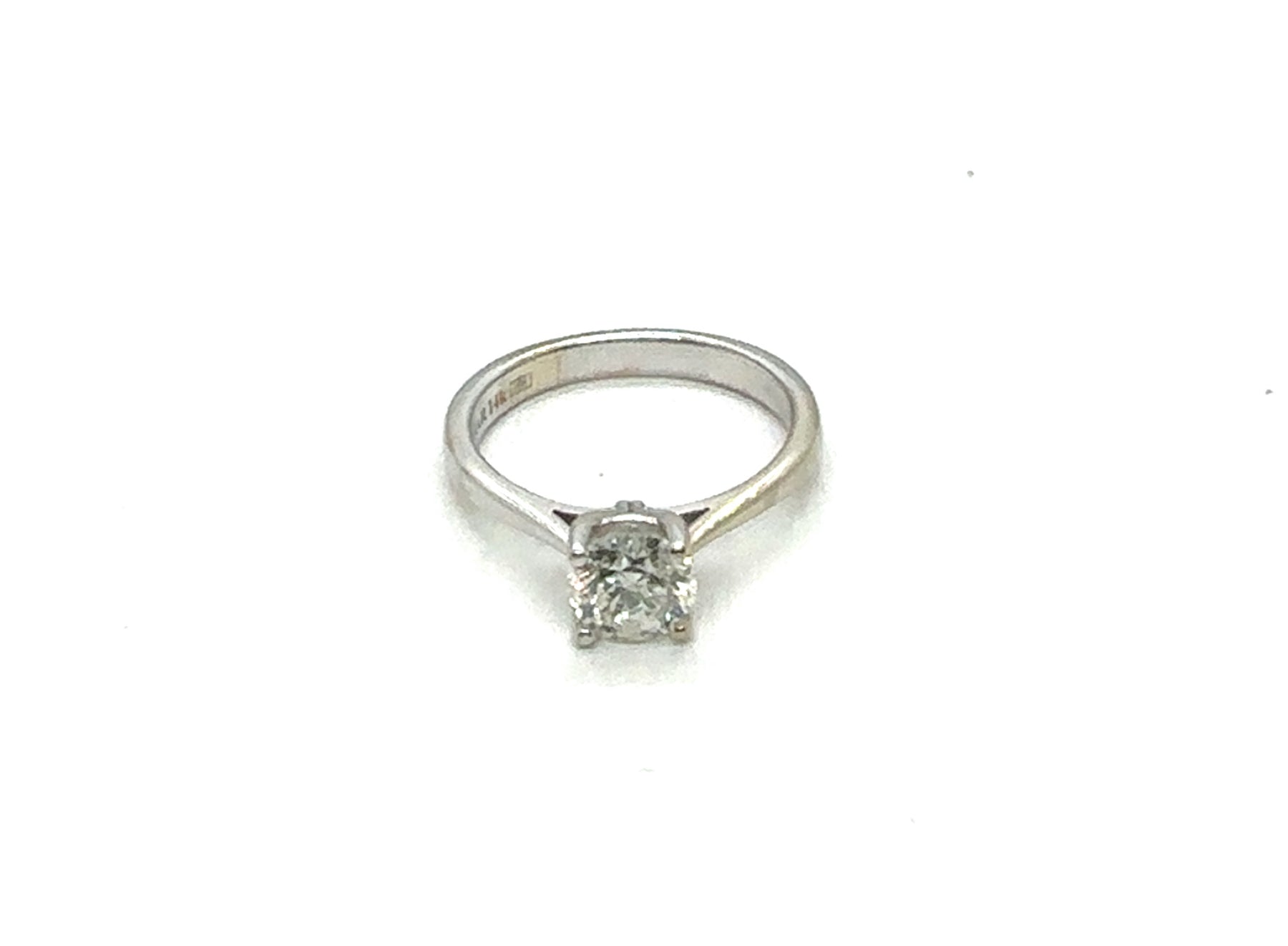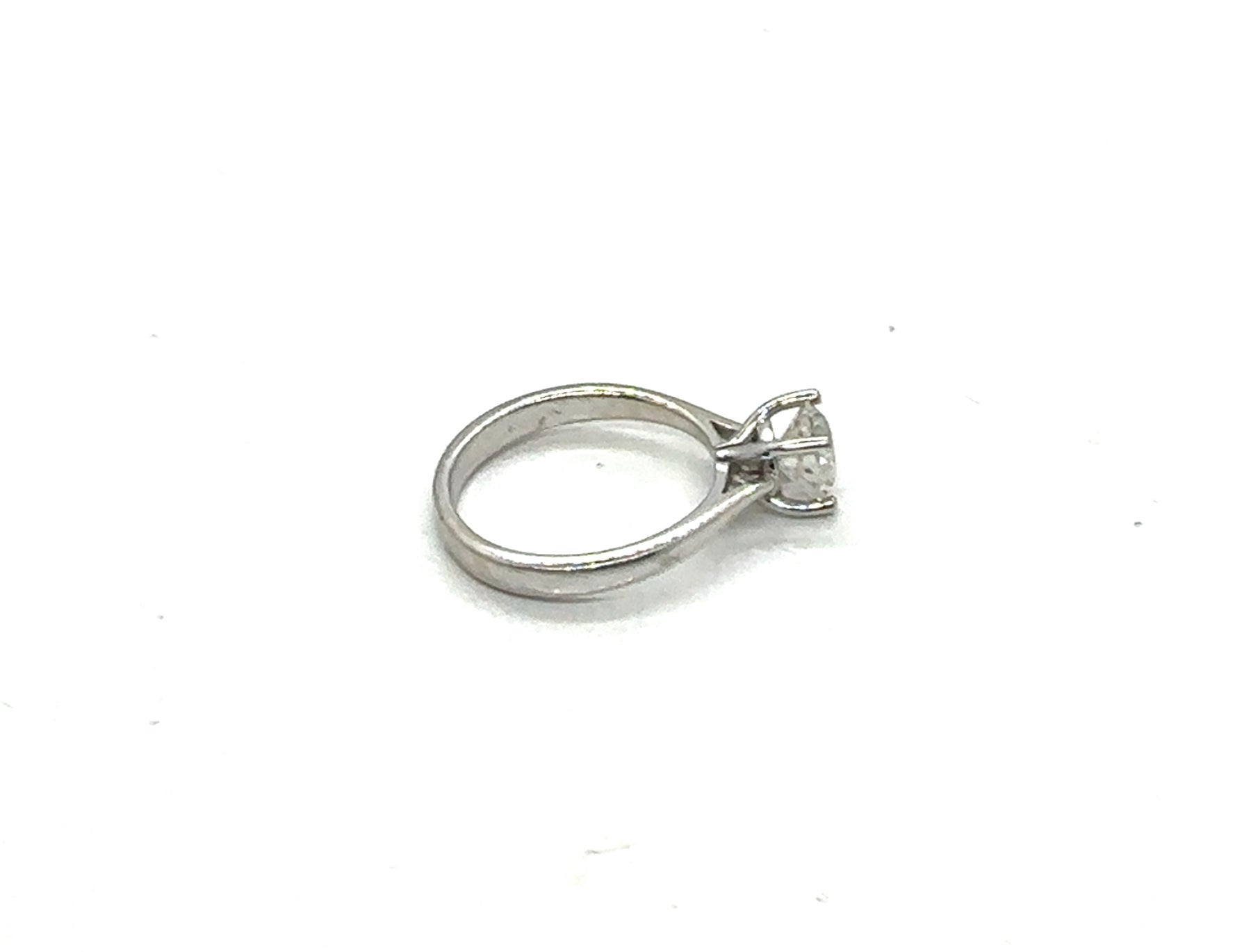 Lady's White Gold 14K Solitaire Engagement Ring Size 6 With One = 1.08Ct Round Brilliant Cut G I1 Canadian Diamond Weight: 3