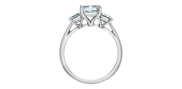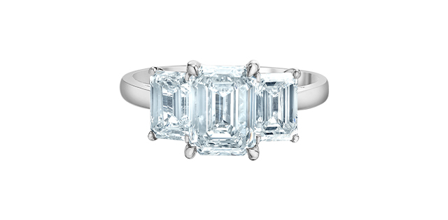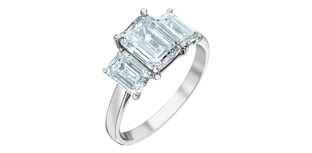 Lady's White Gold 14K Three Stone Engagement Ring Size 6.75 With One = 2.06Ct Emerald Cut E Vs1 Lab Grown Diamond And One = 1.40Ct Emerald Cut Lab Grown Diamond.