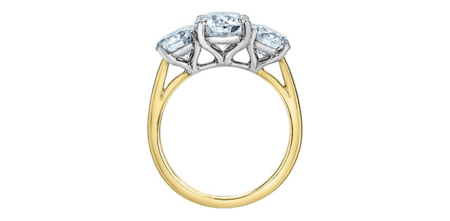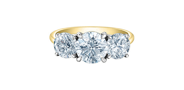 Lady's Two Tone 14K Three Stone Engagement Ring Size 6.5 one = 1.60ct Round Brilliant Cut E VVS2 Diamond
