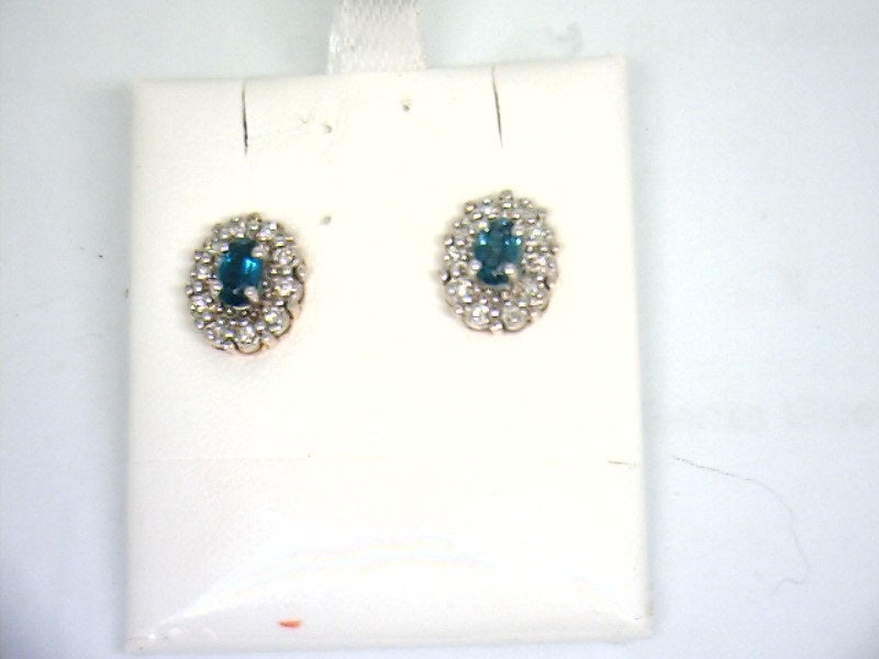 Lady's Two Tone 14K Stud Earrings With 2 = 6.00X3.00Mm Oval Blue Topazs And 20 = 0.13Tw Round Brilliant Cut Diamonds