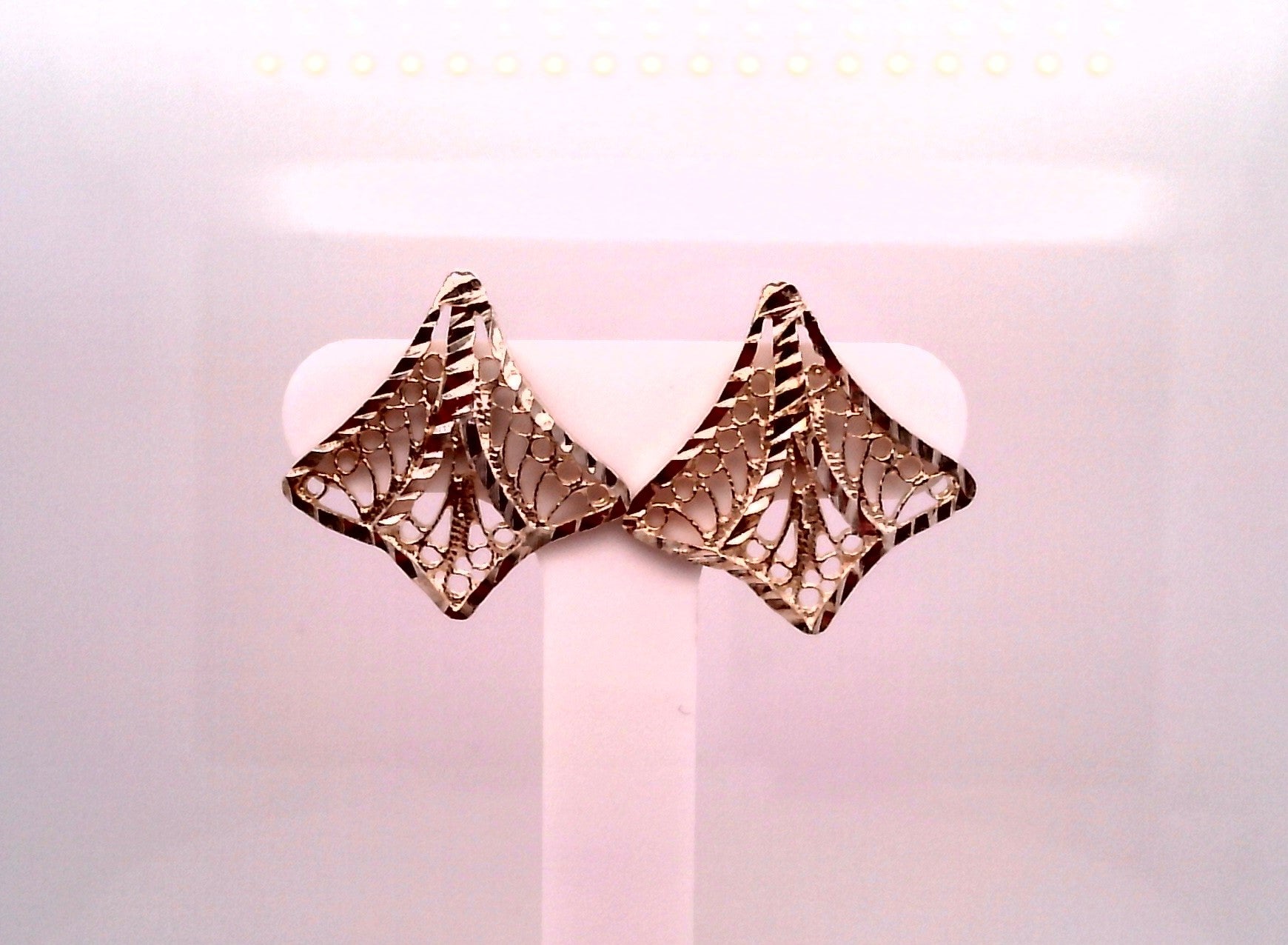 Lady's White Sterling Silver Diamond Cut Stud Earrings
