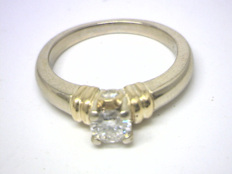 Lady's White/Yellow 14 Karat Solitaire Engagement Ring Size 5.5 With One 0.40Ct Round Brilliant Cut H/I Si3 Diamond And 2=0.10Tw Round Brilliant Cut H/I Si3 Diamonds