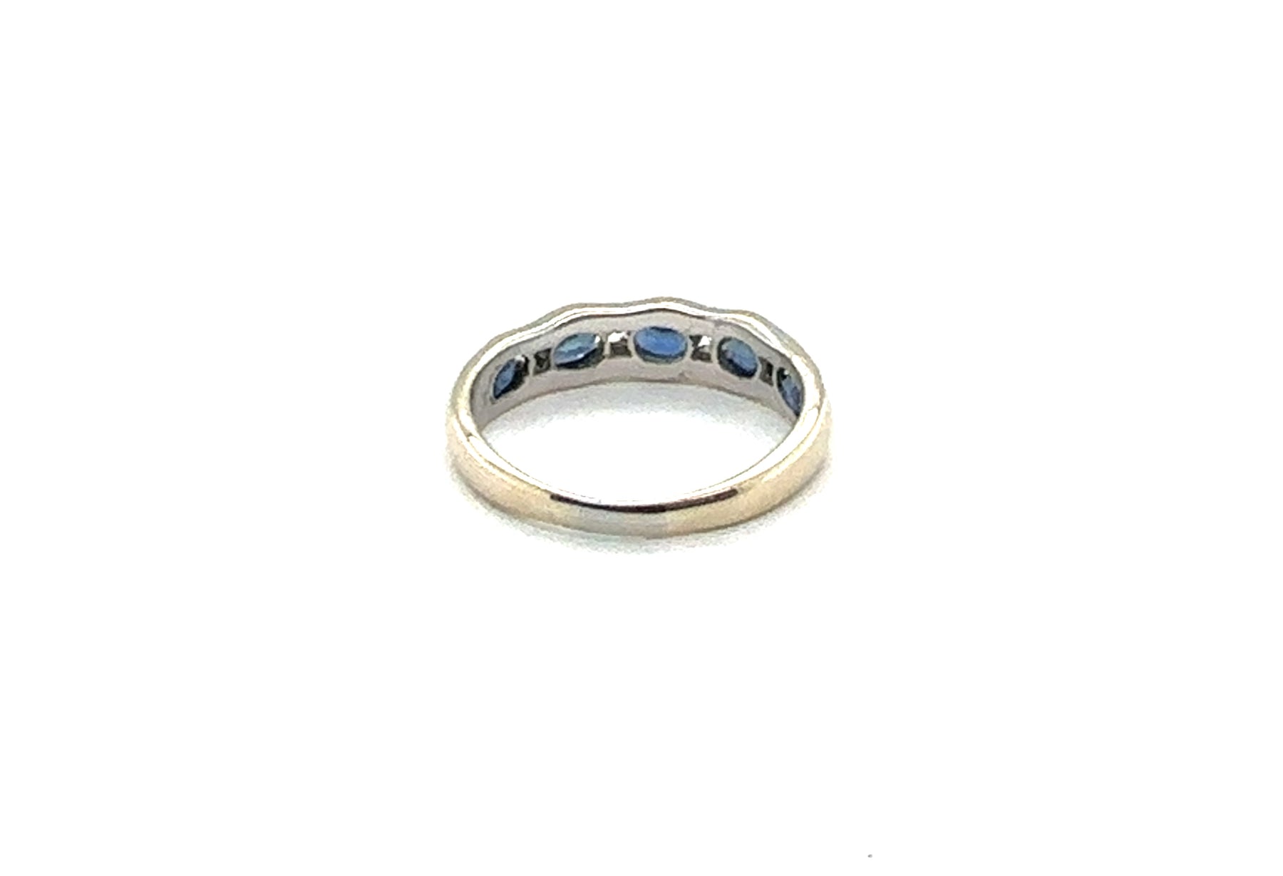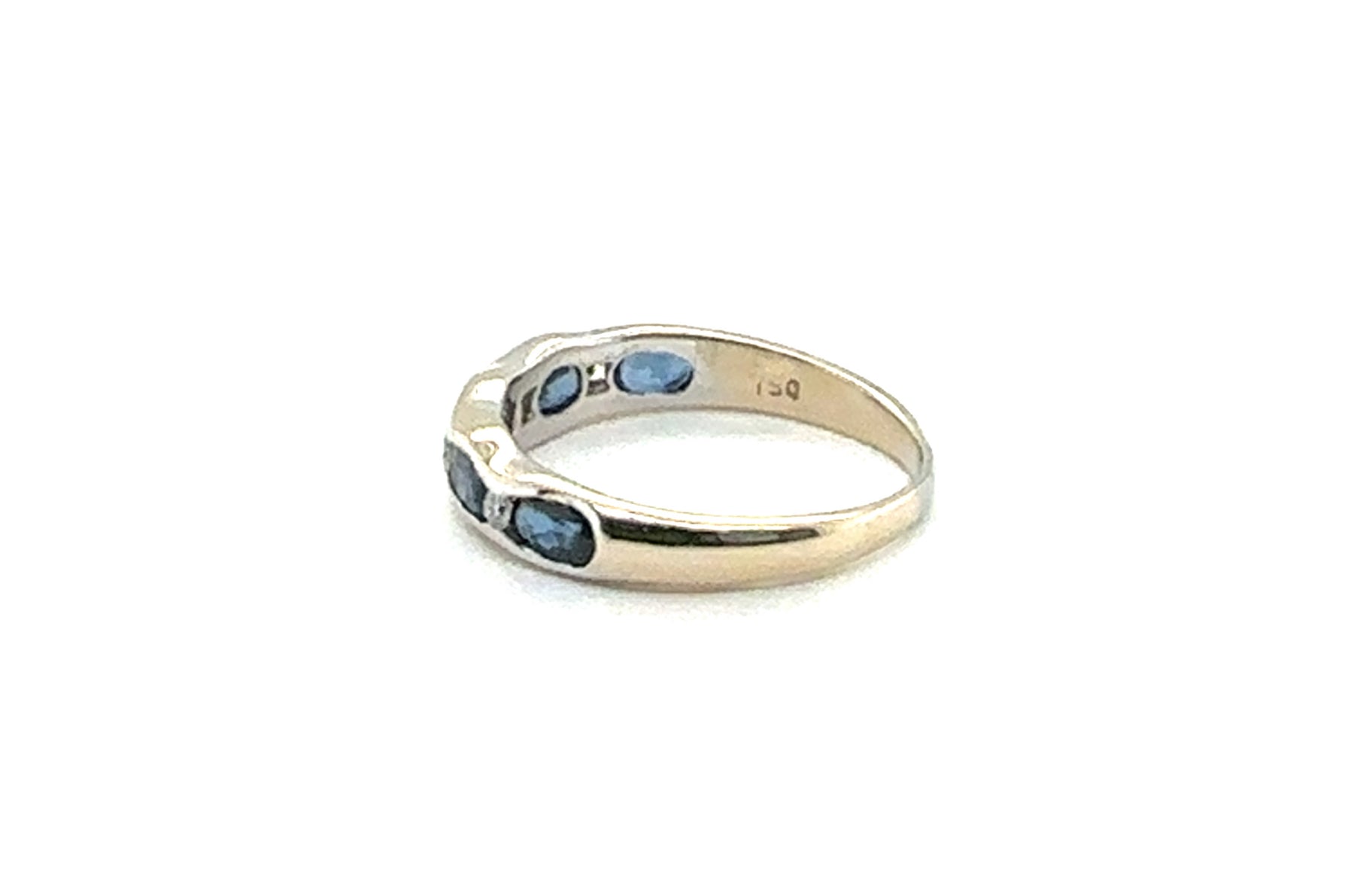 Lady's White Gold 14K Fashion Ring Size 6.75 With 4 = 0.10Tw Round Brilliant Cut Diamonds And 5 = Oval Sapphires Weight: 3.2