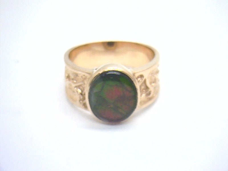 Lady's Yellow Gold 14K Fashion Ring Size 7 With One = 12.00X10.00Mm Oval Shape Ammolite Weight: 5.7