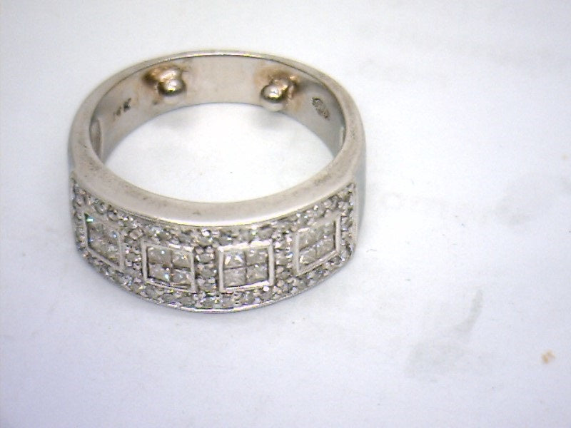 Lady's White Gold 14K Half Anniversary Ring Size 7.75 With 16 = 32.00Tw Princess Cut G/H I1 Diamonds And 49 = 0.25Tw Round Brilliant Cut G/H I1 Diamonds Weight: 6.3
