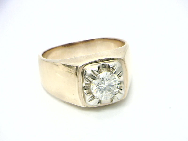 Gent's Yellow/White Polished 10/14 Karat Fashion Ring Size 9.75 With One 1.00Ct Round Brilliant Cut G Vs1 Diamond Weight: 8.7 Comes with GS Labs Appraisal.