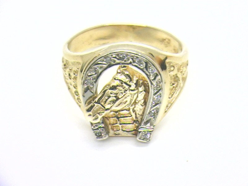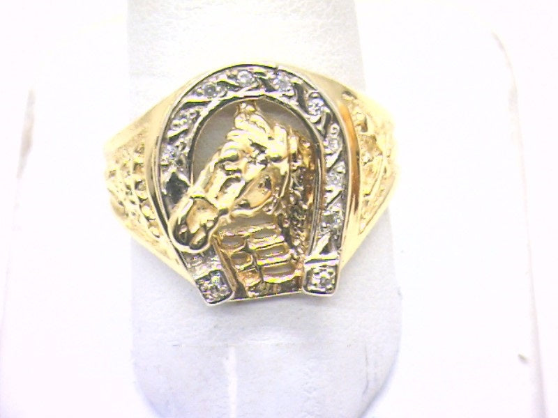 Gent's Yellow Gold 10K Horse Shoe Fashion Ring Size 9 With 11 = 0.10Tw Round Brilliant Cut Diamonds Weight: 5.6