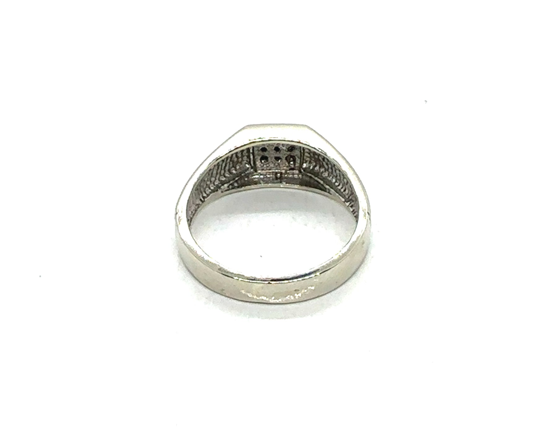 Gent's White Gold 10K Satin Fashion Ring Size 8.75 With 9 = 0.09Tw Round Brilliant Cut Diamonds Weight: 5.24