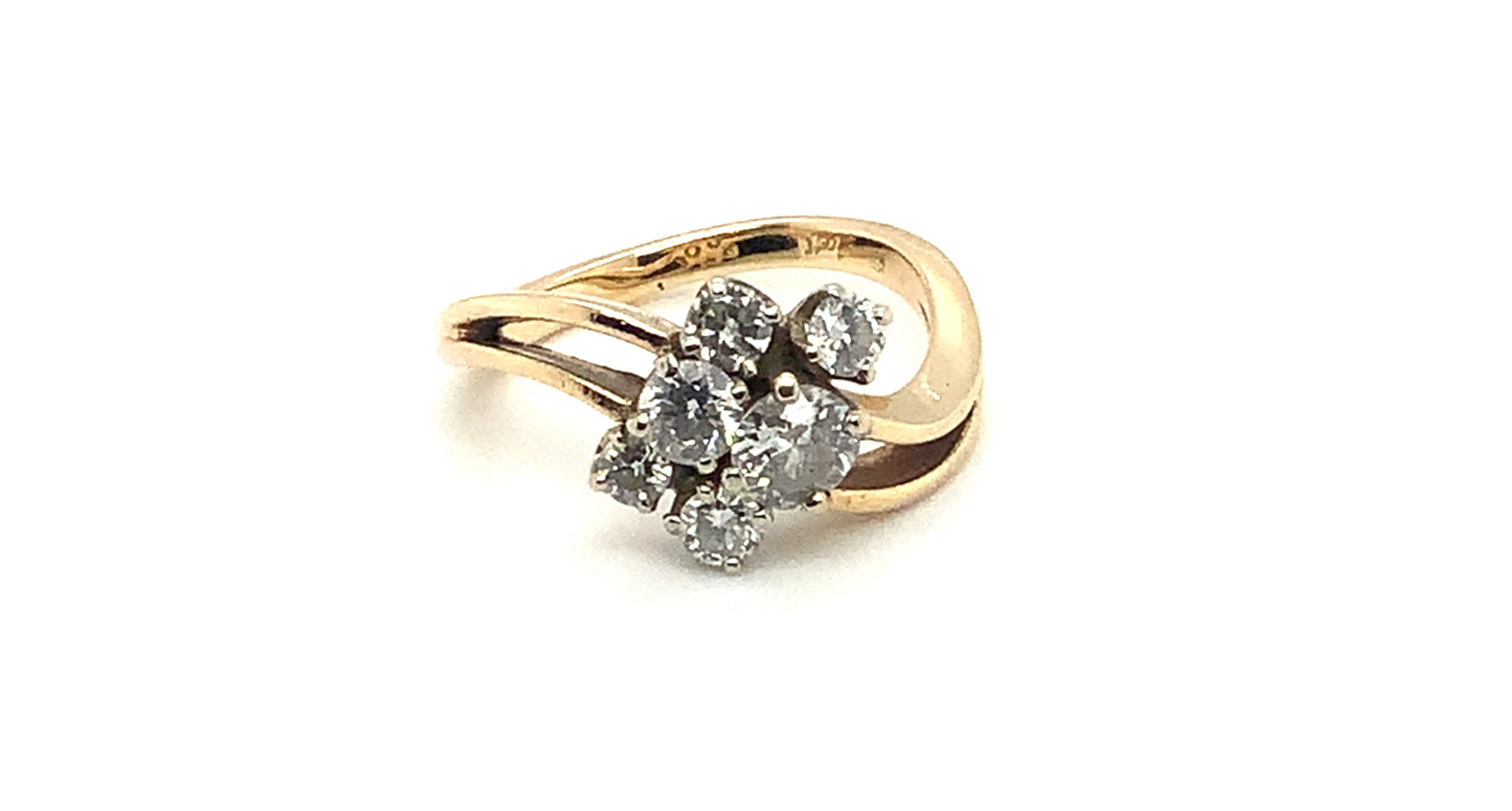 Lady's Yellow Gold 14K Fashion Ring Size 6.5 With One = 0.36Ct Round Brilliant Cut Diamond, One = 0.17Ct Round Brilliant Cut Diamond And 0.37 Twt Other Stones Weight: 4.61