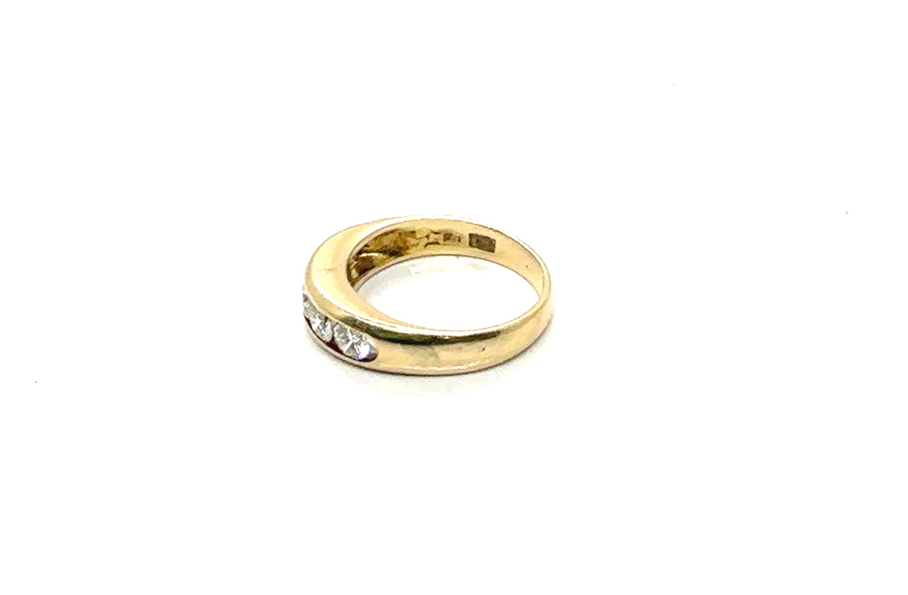 Lady's Yellow Gold 18K Fashion Ring Size 6 With 5 = 1.00Tw Round Brilliant Cut Diamonds Weight: 3.65