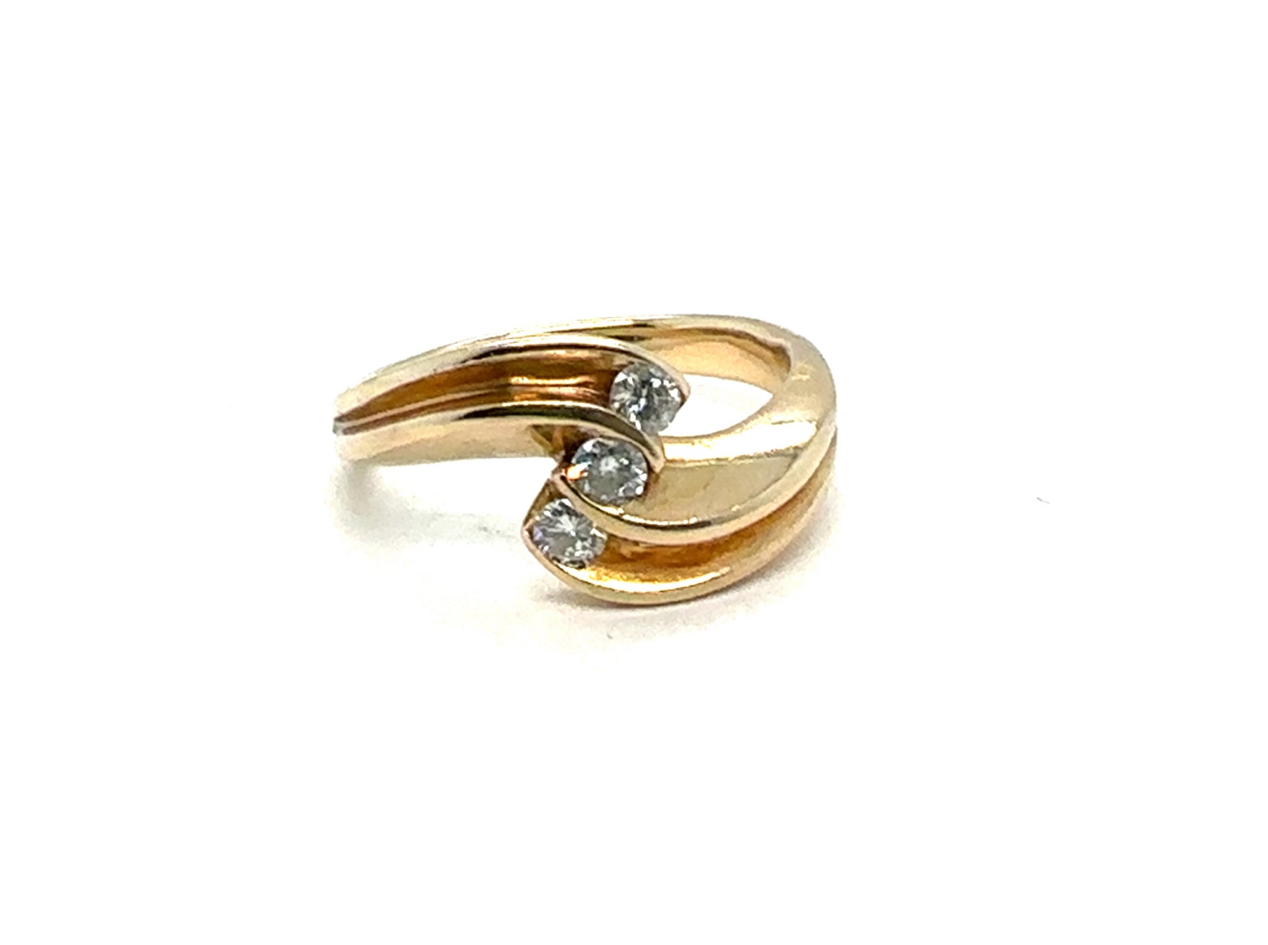 Lady's Yellow Gold 14K Fashion Ring Size 7.5 With 3 = 0.30Tw Round Brilliant Cut Diamonds Weight: 7.5