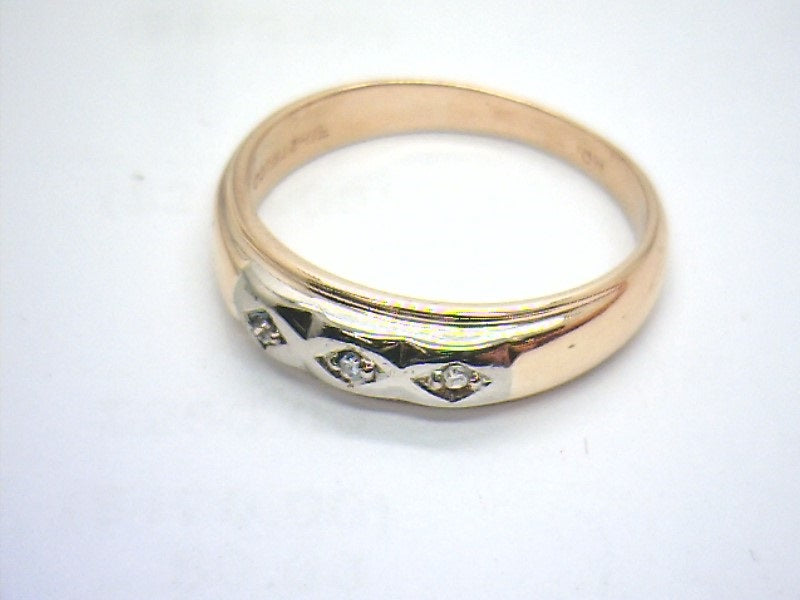Gent's Two Tone 10 Karat Wedding Band Size 10 With 3 = 0.03Tw Round Single Cut Diamonds Weight: 3.6