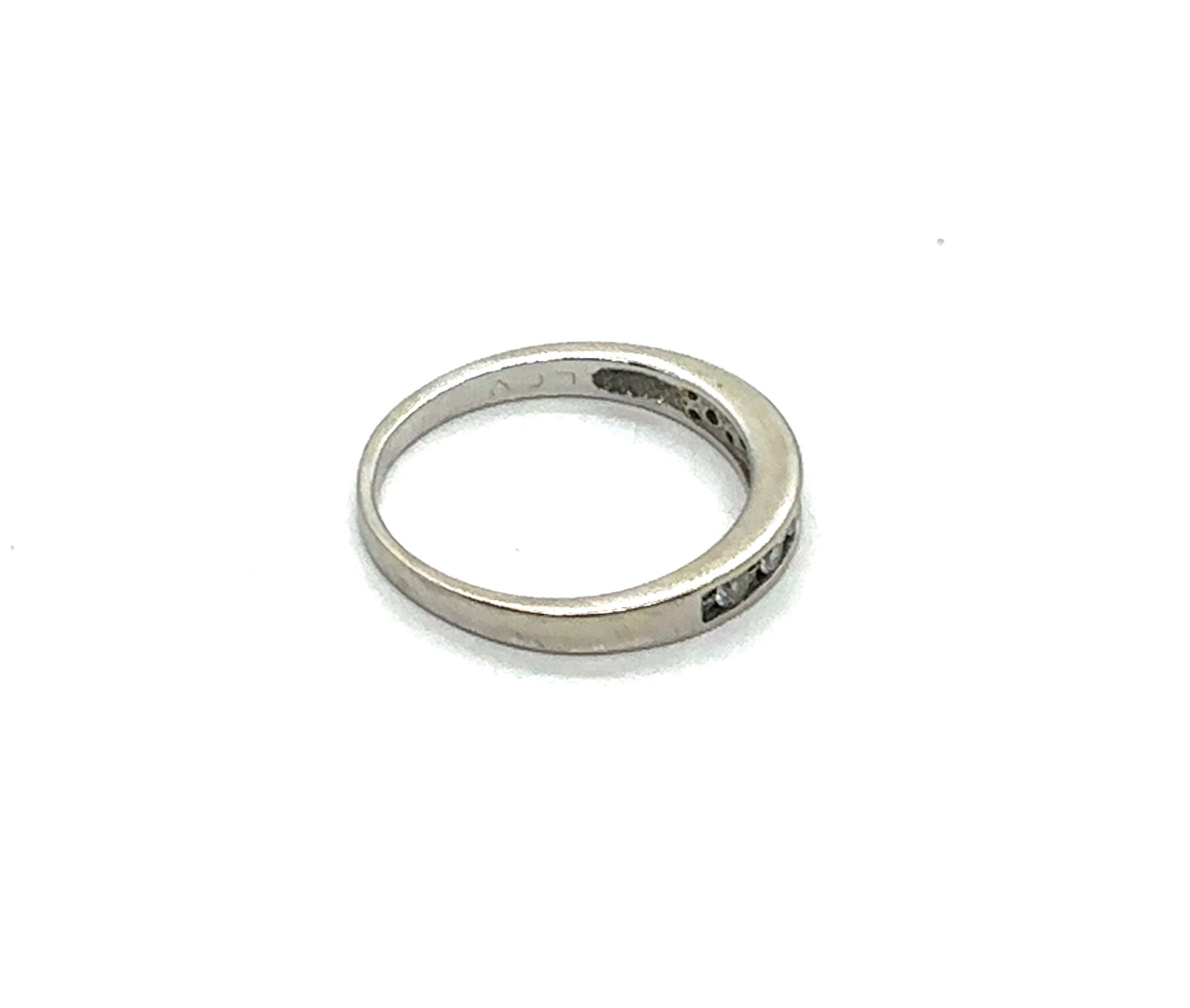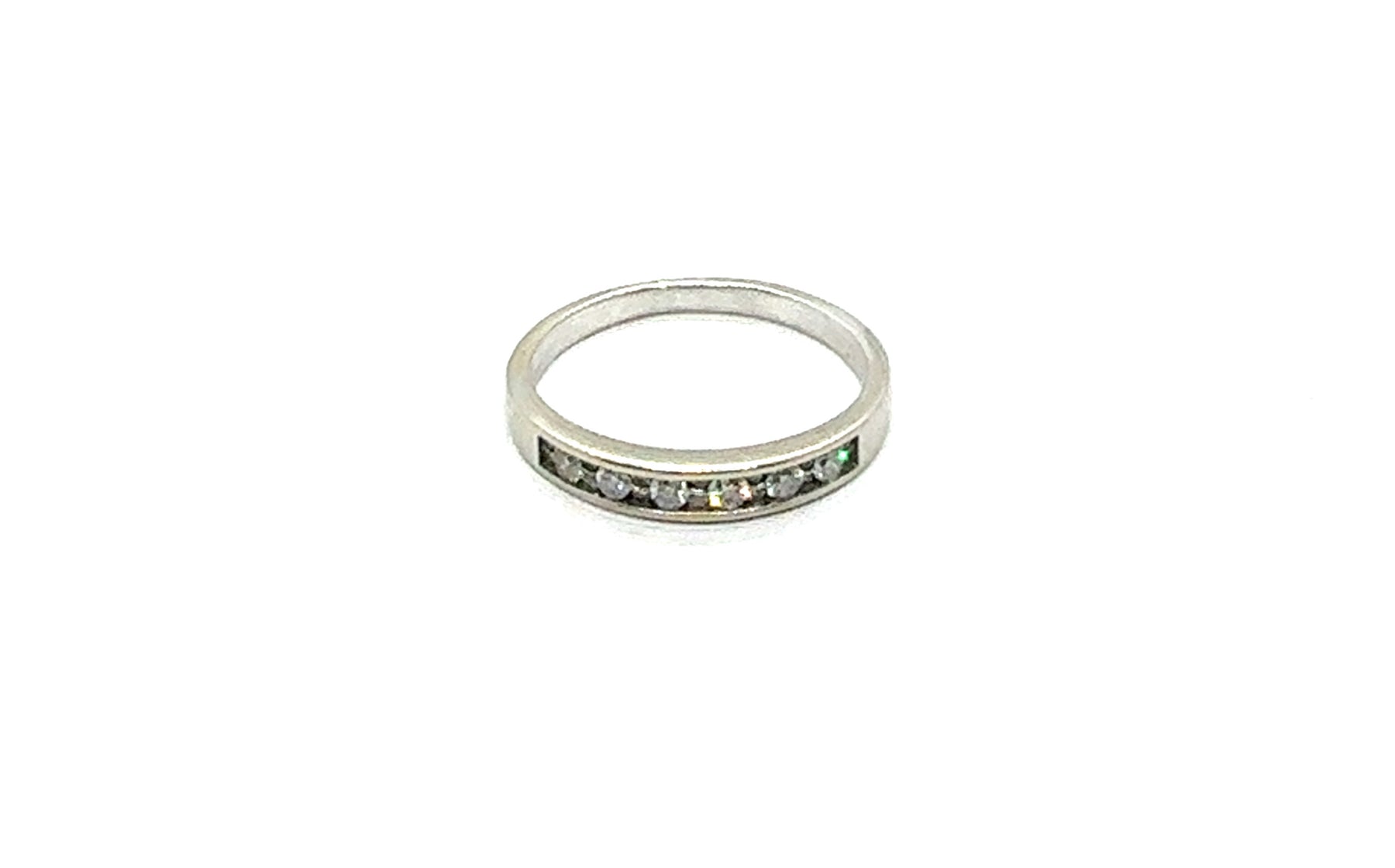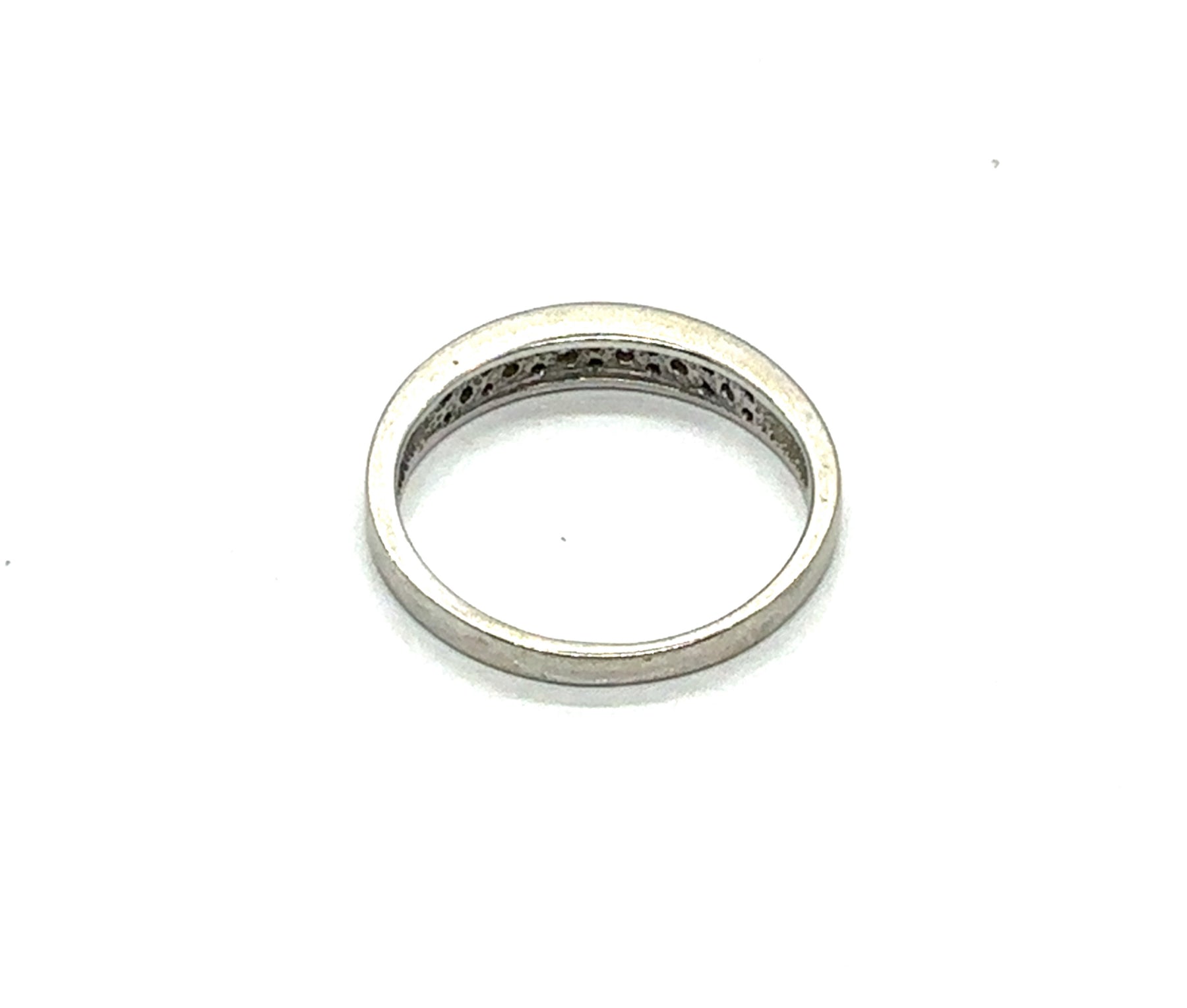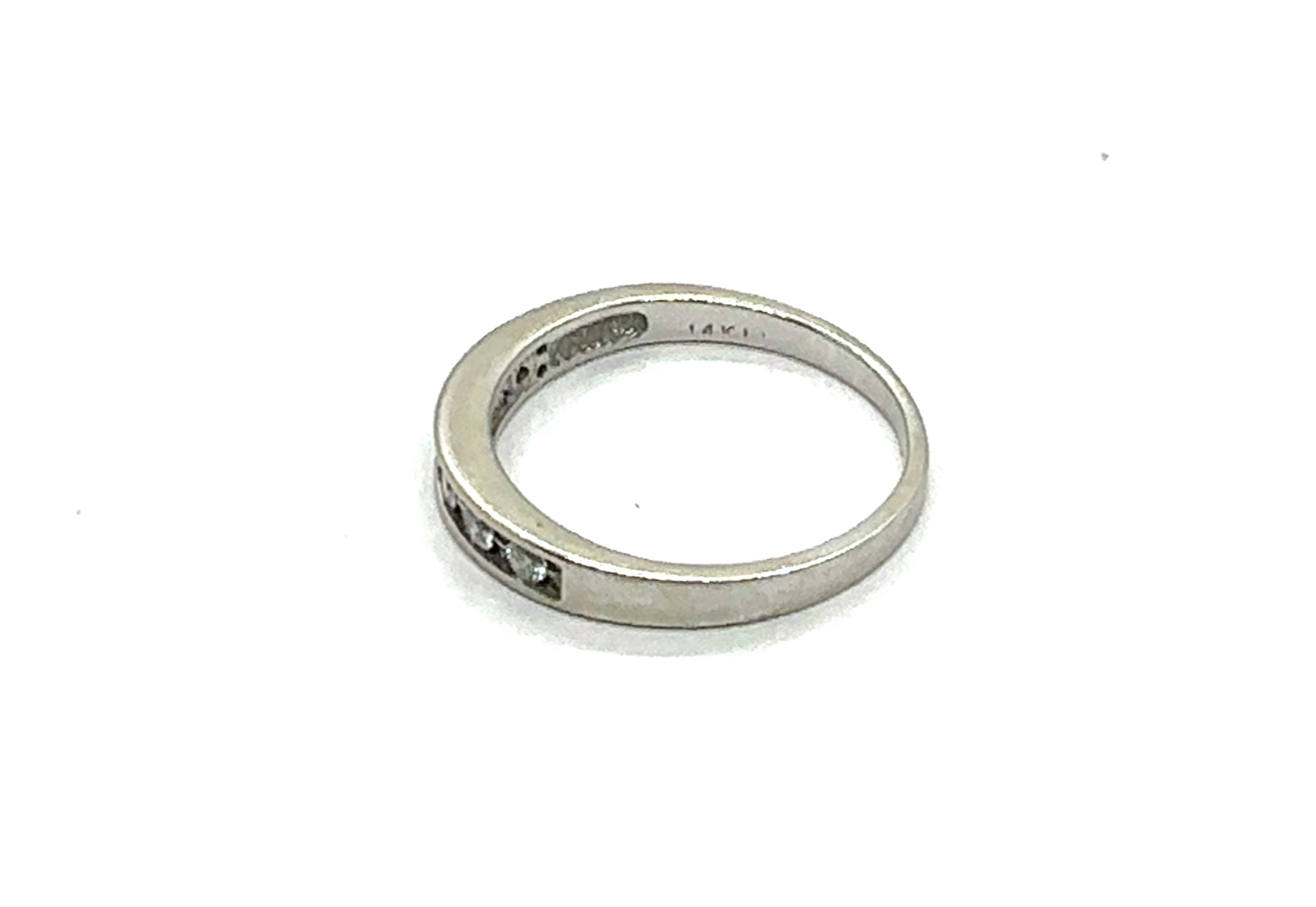 Lady's White Gold 14K Wedding Band Size 8.5 With 6 = 0.18Tw Round Brilliant Cut Diamonds And 14 = 0.01Tw Round Brilliant Cut Diamonds Weight: 2.87