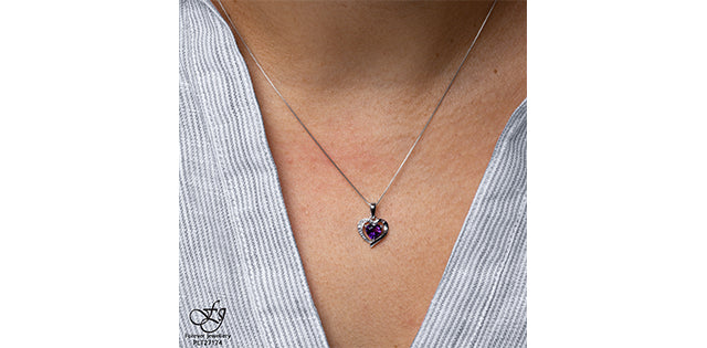 Lady's White 10 Karat Heart Pendants one Heart Shape Amethyst