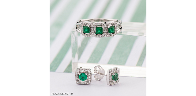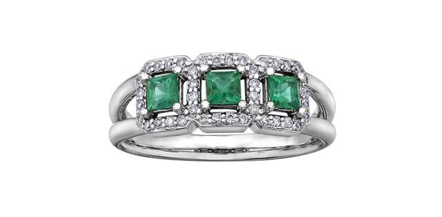 Lady's White Polished 14 Karat Canadian Certified Gold Fashion Ring Size 6.25 3= 3X3 Princess Cut Emeralds
