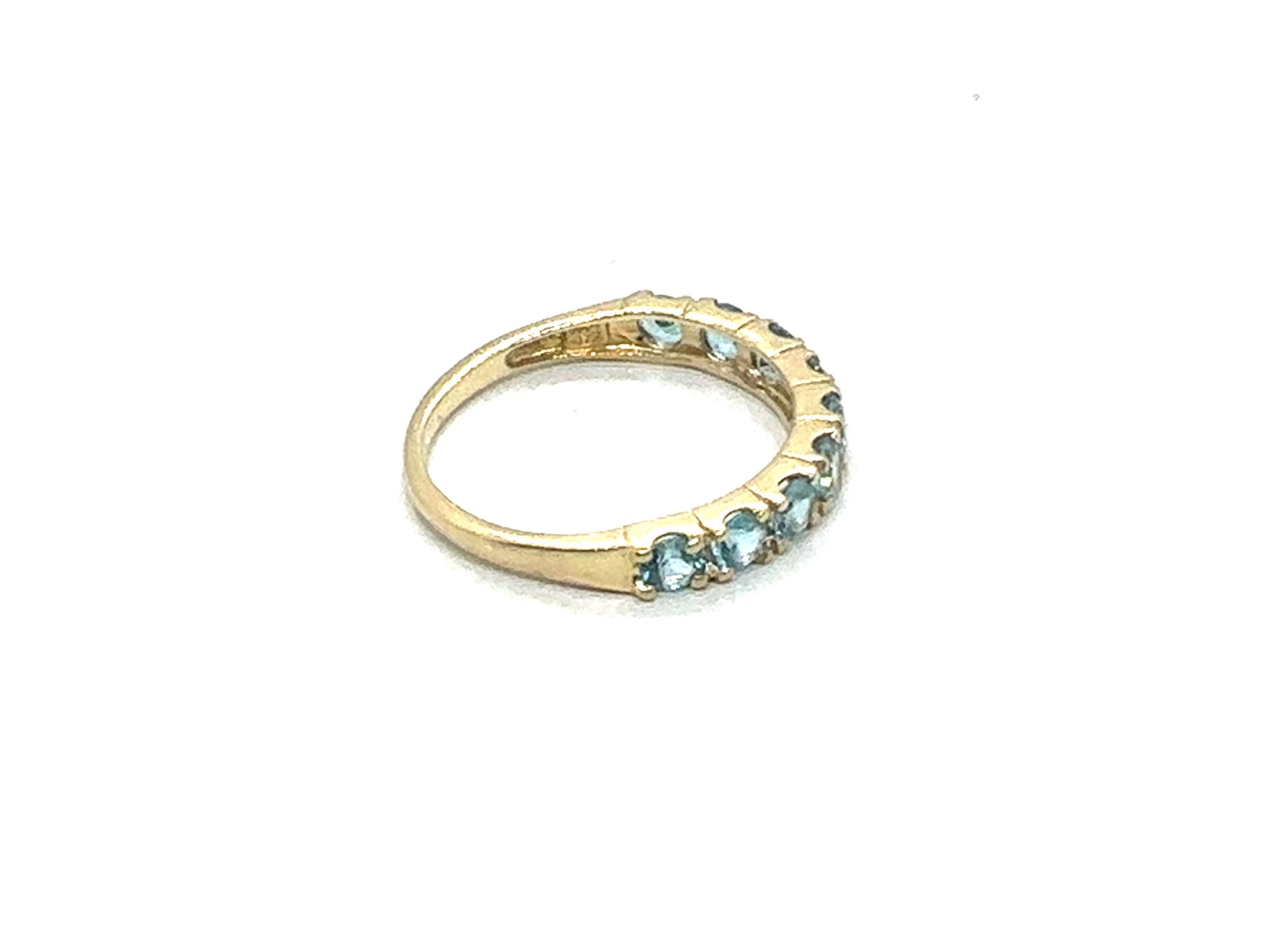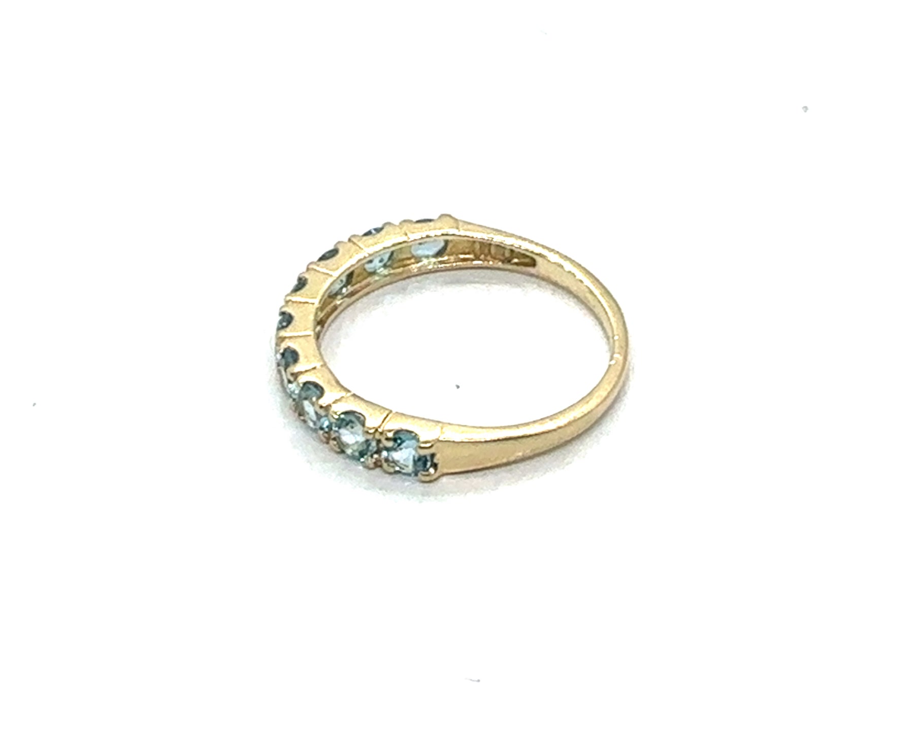 Lady's Yellow Gold 14K Fashion Ring Size 7 With 9 = 0.72Tw Round Aquamarines Weight: 1.73