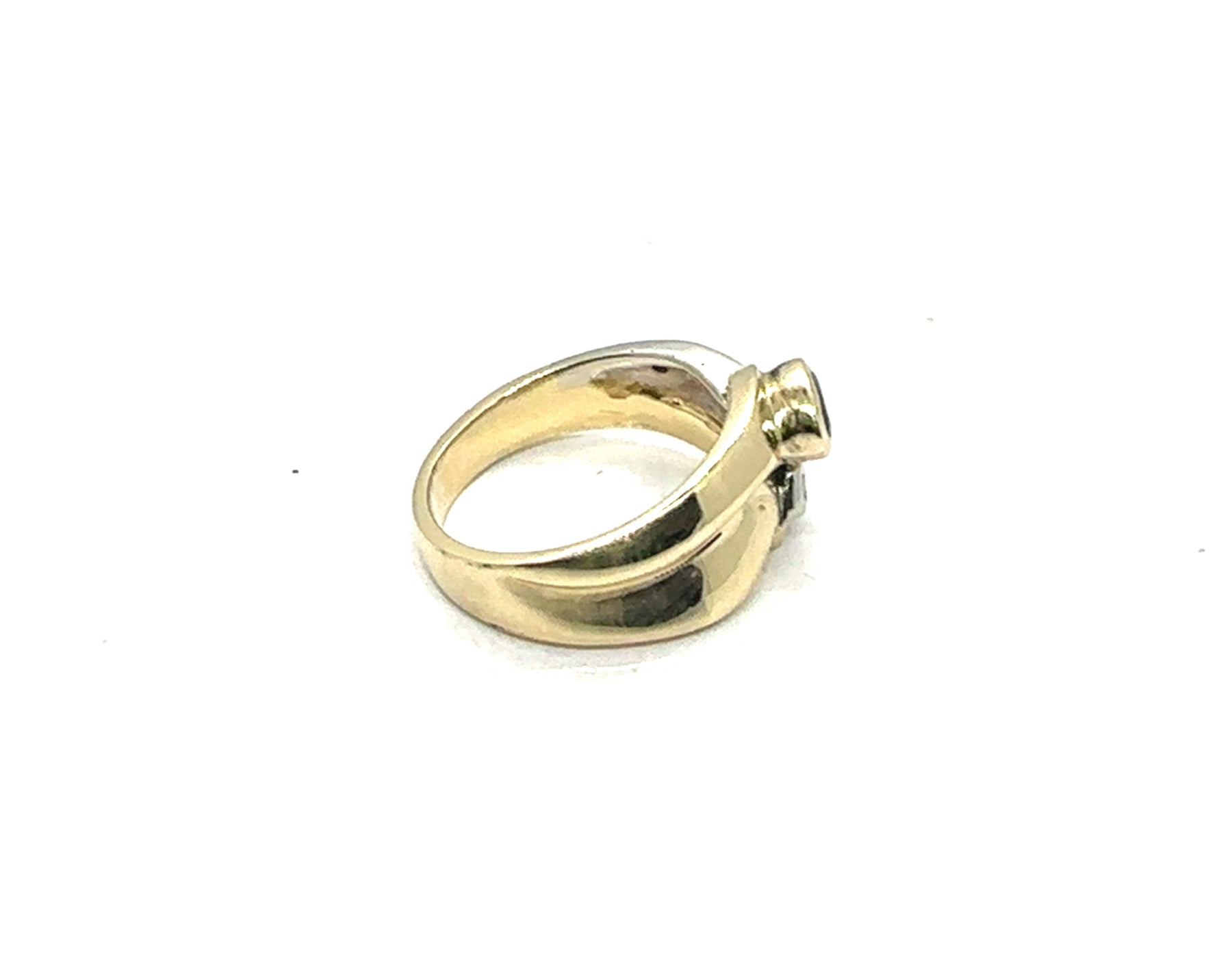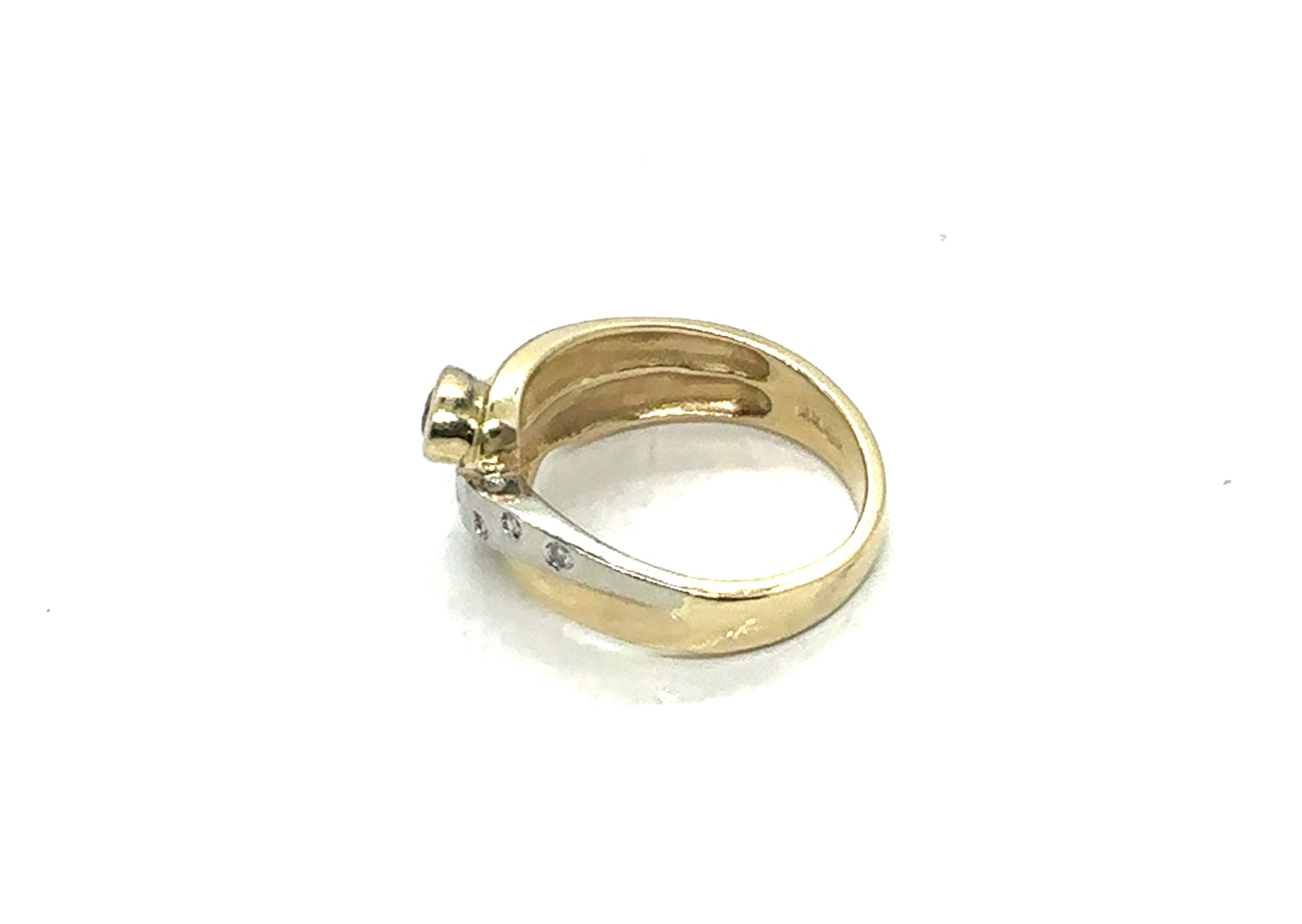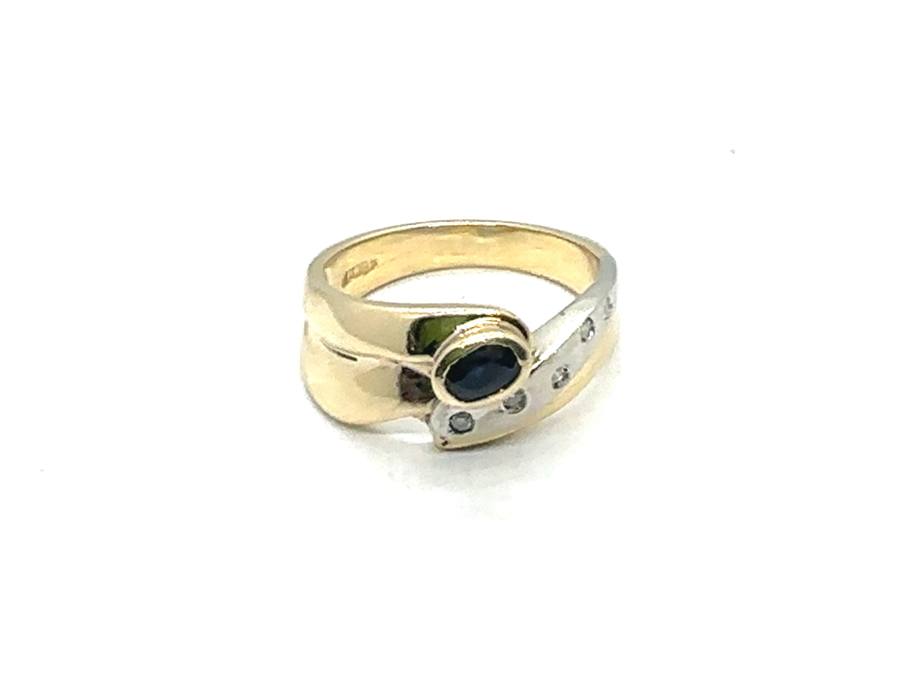 Lady's Yellow Gold 10K Fashion Ring Size 6.75 With One = 0.25Ct Oval Sapphire And 5 = 0.02Tw Round Brilliant Cut Diamonds Weight: 4.94