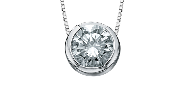 Lady's White Gold 10K Pendant With One 0.10Ct Round Brilliant Cut Diamond