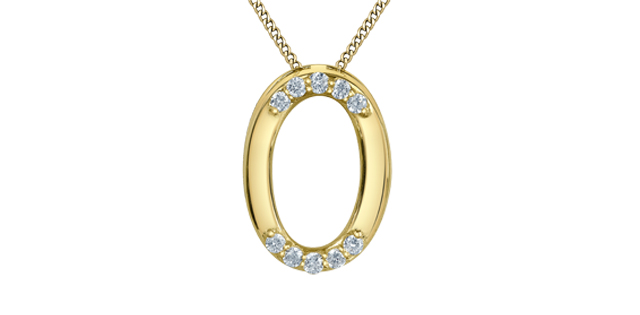 Lady's Yellow Gold 10K Drop Pendant 2 = 0.012Tw Round Brilliant Cut G Vs1 Lab Grown Diamonds, 8 = 0.04Tw Round Brilliant Cut G Vs1 Lab Grown Diamonds