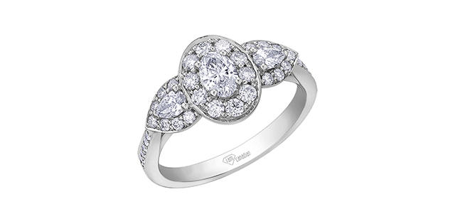 14K White Gold 0.30 Oval Shape Three Stone Diamond Engagement Ring