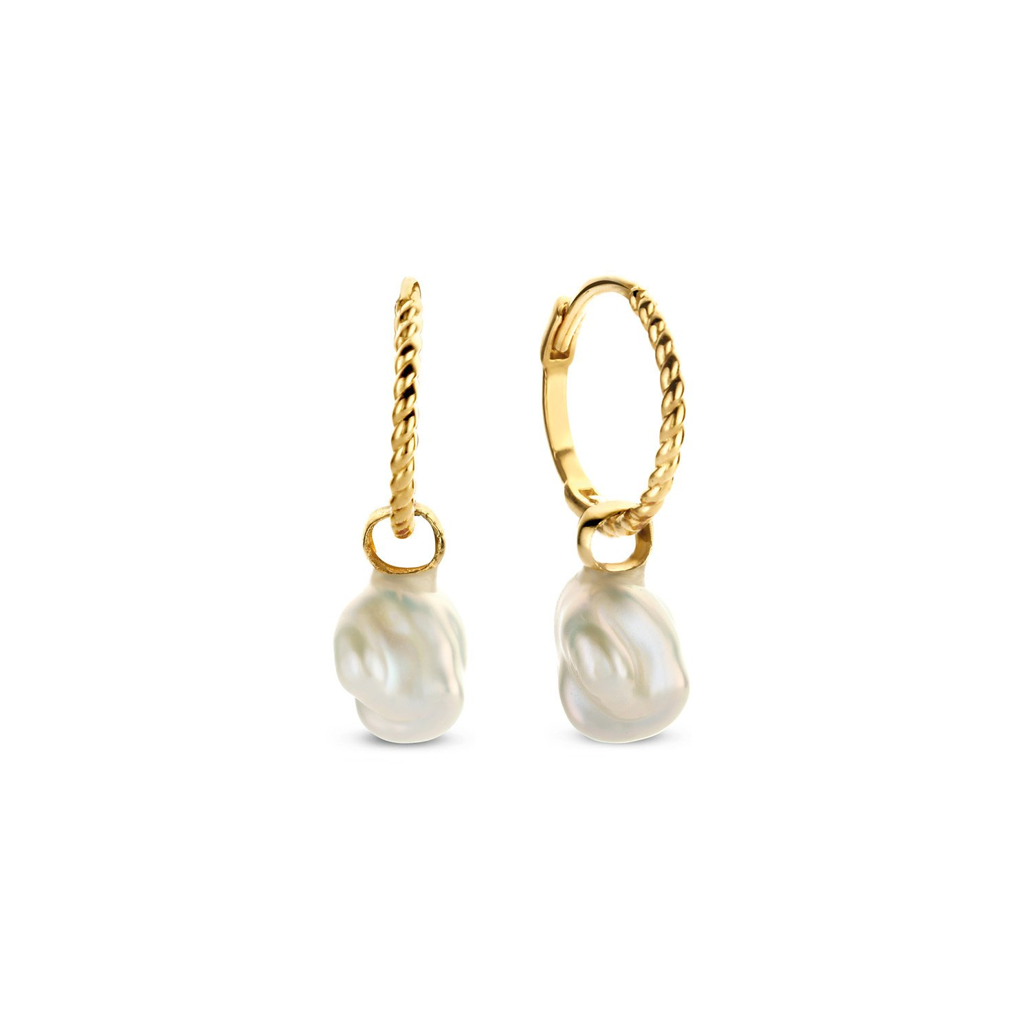 14K Yellow Gold Small Hoop Pearl Earrings MM.