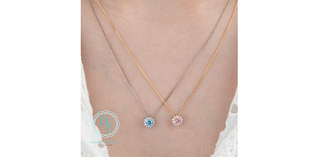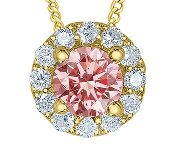 Lady's Yellow Gold 10K Cluster Pendant one = Round Brilliant Cut G VS1 Pink Lab Grown Diamond, 12 = 0.10tw Round Brilliant Cut G VS1 Lab Grown Diamonds. Comes with 18" chain.