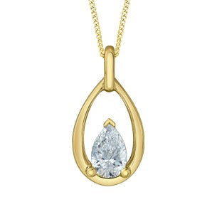 Lady's Yellow Gold 10K Drop Pendant One = 0.30Ct Pear Shape G Vs1 Lab Grown Diamond. Come with 18" Chain