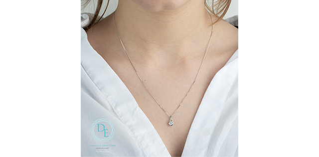 Lady's White Gold 10K Drop Pendant One = 0.25Ct Round Brilliant Cut G Vs1 Lab Grown Diamond, Comes with 18" Chain