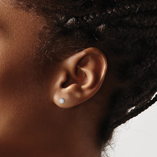Sterling Silver Rhod-plated 3mm CZ Grooved Bezel Post Stud Earrings
