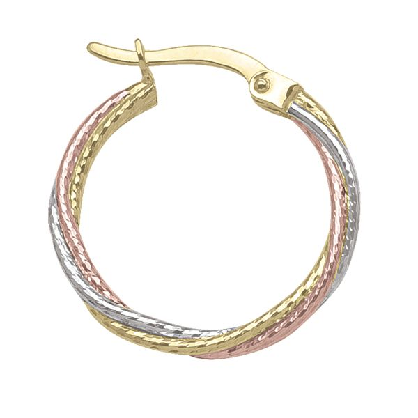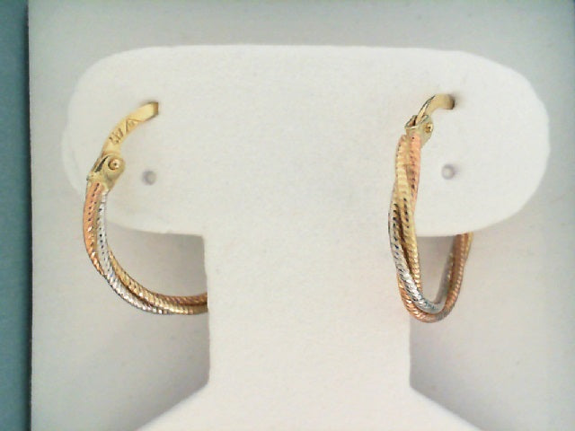 Lady's Yellow/White/Rose 10 Karat Small Hoop Earrings