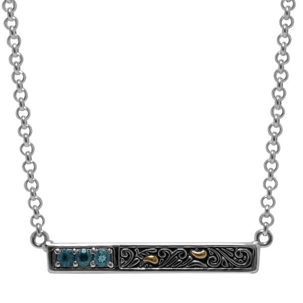 SAMUEL B. Sterling Silver/Bar Necklace With Blue Topaz Accents