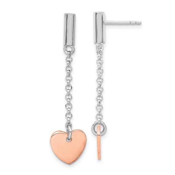Leslie's Sterling Silver Rose-tone Rhodium Heart Post Dangle Earrings