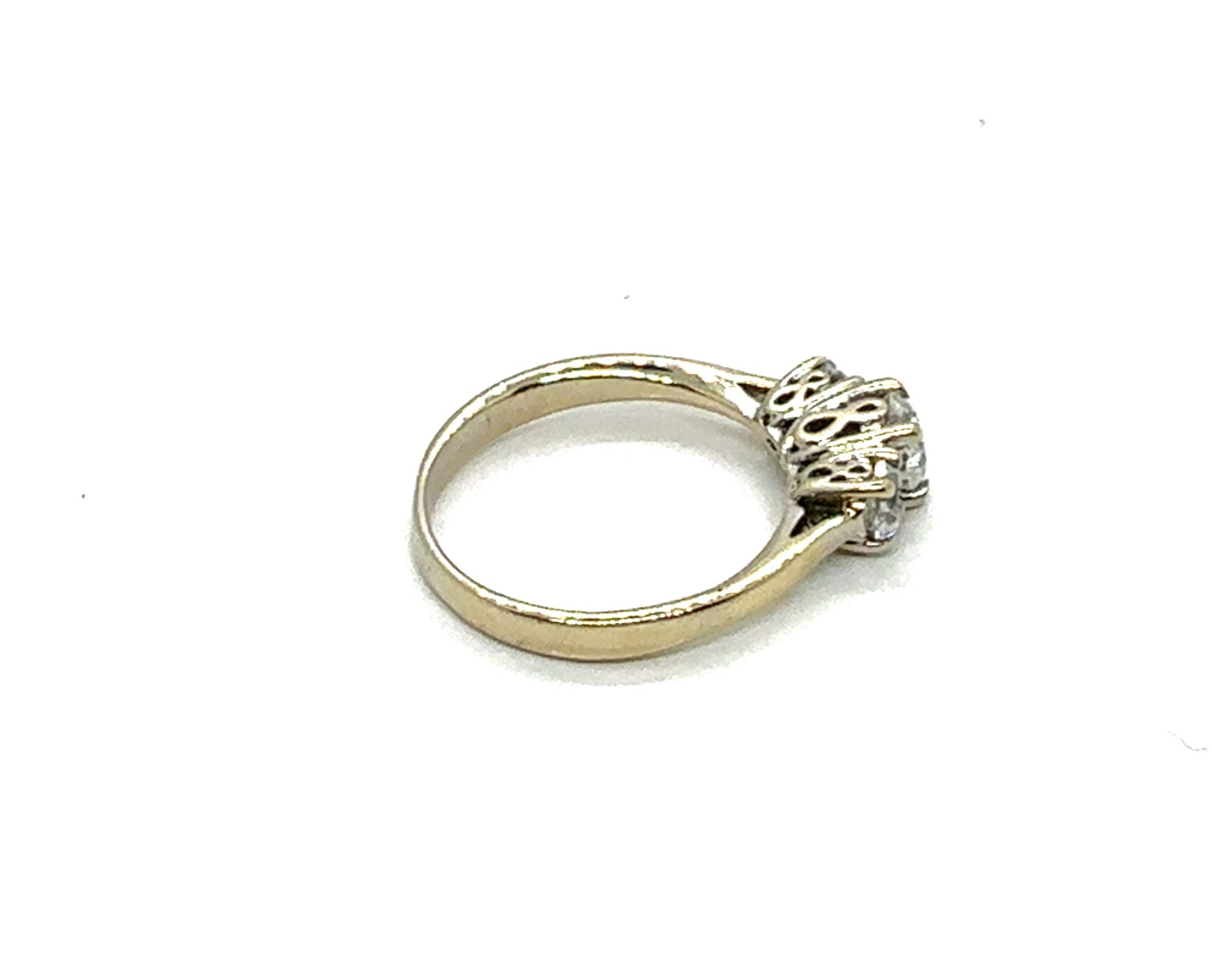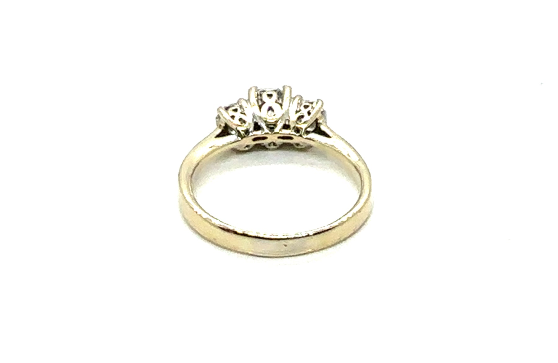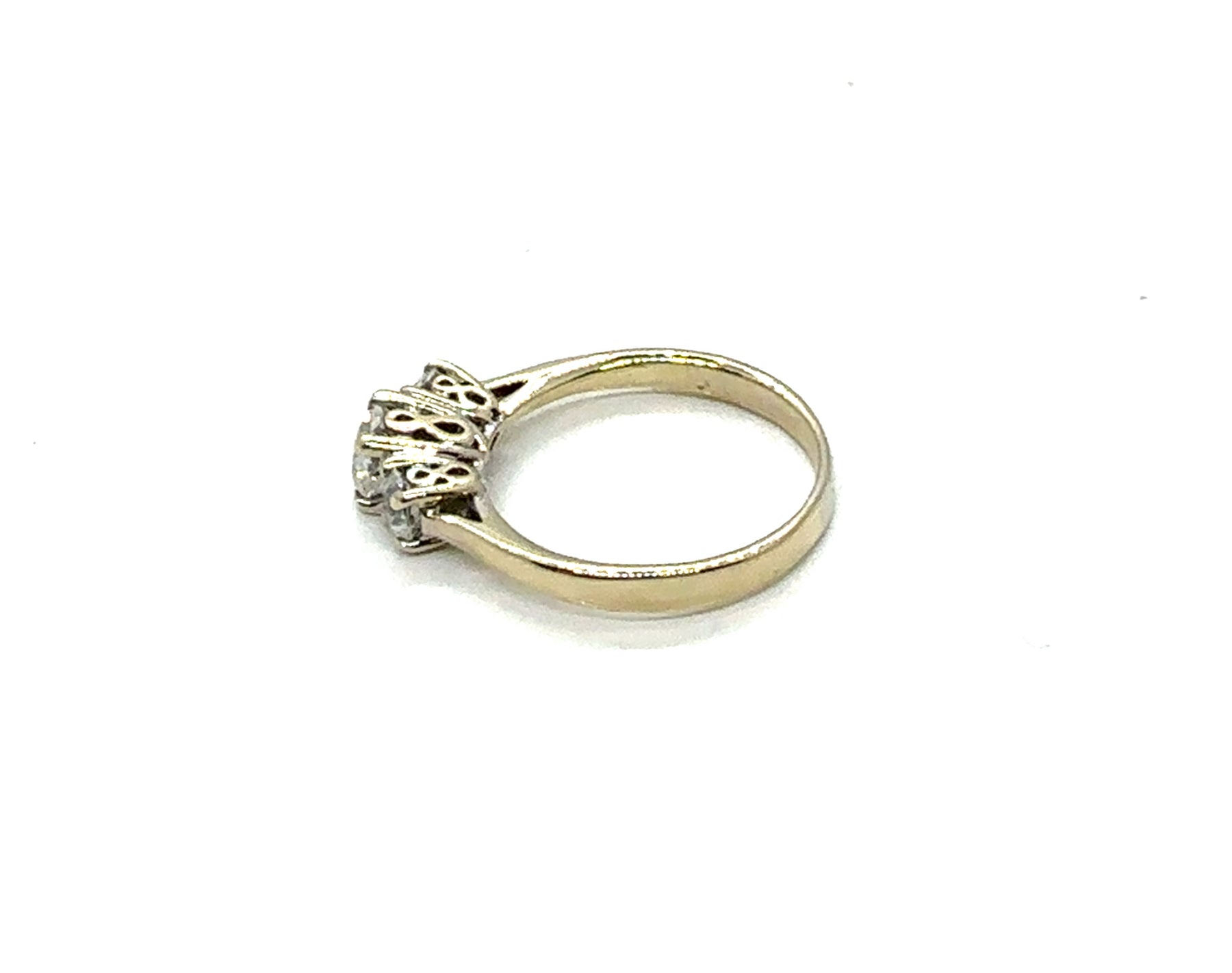 Lady's Two Tone 18K Three Stone Engagement Ring Size 6.5 With One = 0.50Ct Round Brilliant Cut E/F Vvs2 Diamond And 2 = 0.50Tw Round Brilliant Cut E/F Vvs2 Diamonds Weight: 3.33