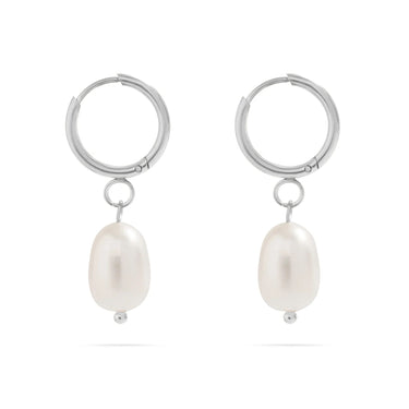 Stainless Steel Huggie Hoop with Freshwater Pearl Earrings